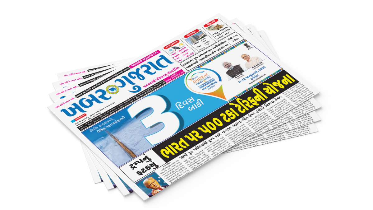 HomeepaperKhabar Gujarat Date 08-01-2026 EPaper epaper Khabar Gujarat Date 08-01-2026 EPaper January 8, 2026 Share FacebookTwitterWhatsAppTelegram - Advertisement - Share FacebookTwitterWhatsAppTelegram Previous articleમકરસંક્રાતિ પહેલા જામનગર ટ્રાફીક પોલીસની અનોખી પહેલ – VIDEONext articleસેવક ભરૂડિયામાં ઘોડીપાસાનો જુગાર રમતાં 24 શખ્સો ઝડપાયા RELATED ARTICLES epaper Khabar Gujarat Date 07-01-2026 Epaper January 7, 2026 epaper Khabar Gujarat Date 06-01-2026 Epaper January 6, 2026 epaper Khabar Gujarat Date 05-01-2026 Epaper January 5, 2026 - Advertisment - Most Popular પ્રવાસી ભારતીય દિવસ 2026: દેશના GDPમાં NRIની ભૂમિકા કેટલી મહત્વની…? January 9, 2026 લગ્નમાં ડીજેના તાલ ઉપર નાચી રહેલા જાનૈયાઓ વચ્ચે આખલો ઘૂસ્યો – VIDEO January 9, 2026 જામનગરના શ્રી બાલા હનુમાન મંદિરની તા.08/01/2026, ગુરૂવારની આરતીના દર્શન – VIDEO January 8, 2026 એલ.જી. હરિયા સ્કૂલના વિદ્યાર્થીઓની જામનગર ટેક ફેસ્ટની શૈક્ષણિક મુલાકાત January 8, 2026 Load more