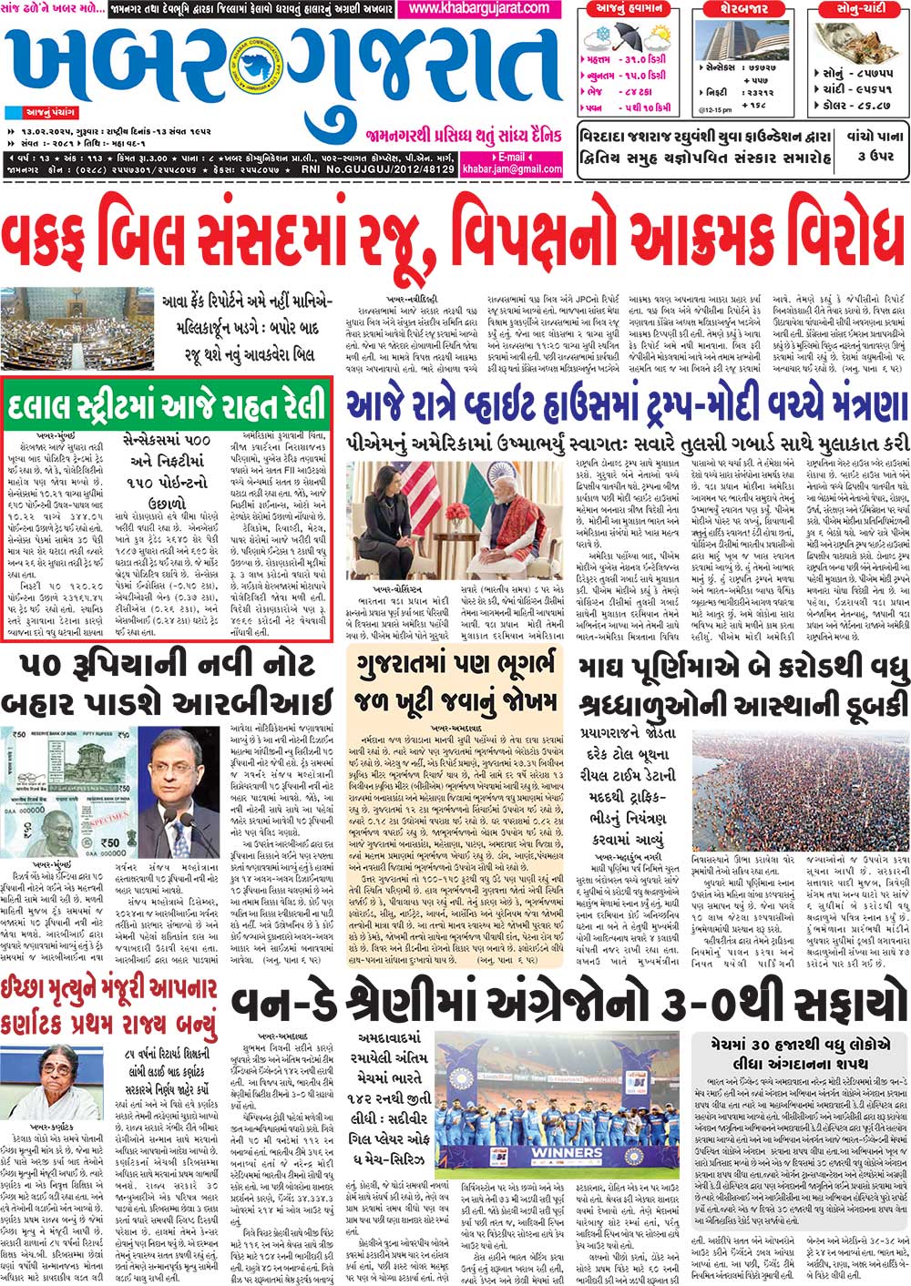 HomeepaperKhabar Gujarat Date 13-02-2025 Epaper epaper Khabar Gujarat Date 13-02-2025 Epaper February 13, 2025 Share FacebookTwitterWhatsAppTelegram - Advertisement - Share FacebookTwitterWhatsAppTelegram Previous articleજામનગર જિલ્લાના ખતરનાક ગુનેગારની પાસા હેઠળ ધરપકડNext articleજામનગરમાં પ્રતિબંધિત વિદેશી સિગારેટના જથ્થા સાથે સર્વેયર ઝડપાયો RELATED ARTICLES epaper Khabar Gujarat Date 16-12-2025 Epaper December 16, 2025 epaper Khabar Gujarat Date 15-12-2025 Epaper December 15, 2025 epaper Khabar Gujarat Date 13-12-2025 Epaper December 13, 2025 - Advertisment - Most Popular જામનગરના શ્રી બાલા હનુમાન મંદિરની તા.16/12/2025, મંગળવારની આરતીના દર્શન – VIDEO December 16, 2025 ‘जहां से भी घुसोगे, सामने हिंदुस्तानी फौजी खड़ा पाओगे’, બોર્ડર 2નું શક્તિશાળી ટીઝર રિલીઝ – VIDEO December 16, 2025 નવાનગર કો-ઓપરેટિવ બેંકને નવી આગેવાની – VIDEO December 16, 2025 વિખ્યાત ફુટબોલર મેસ્સીનો જામનગર એરપોર્ટ પરનો વીડિયો December 16, 2025 Load more