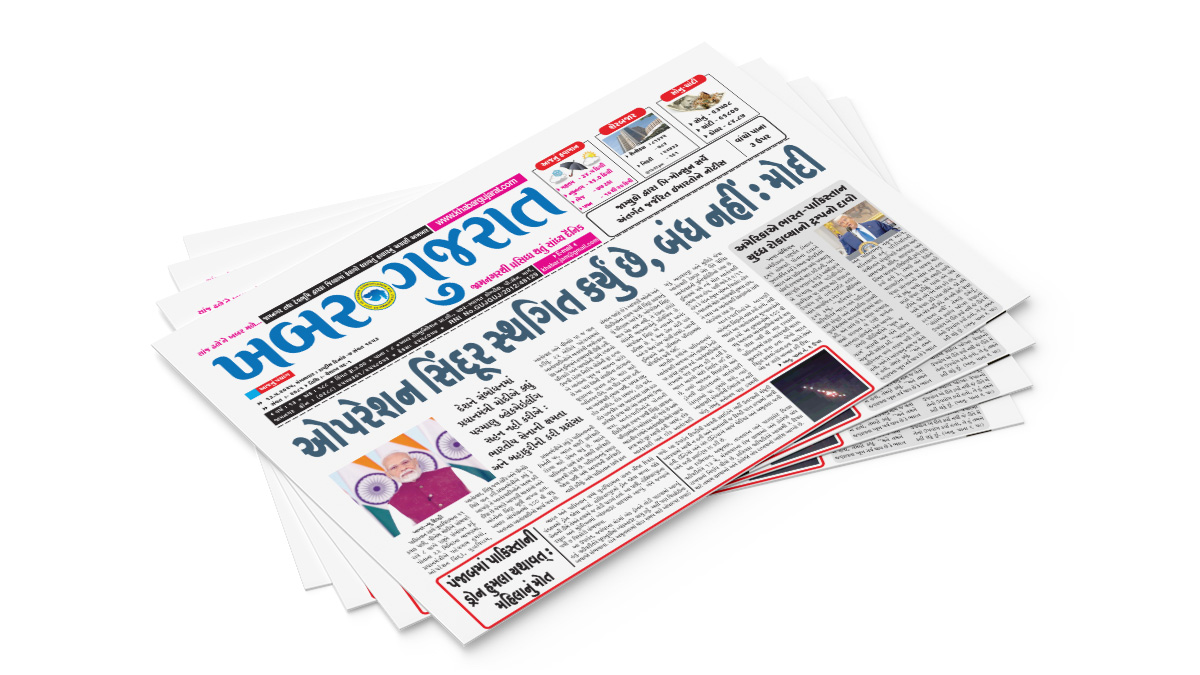 HomeepaperKhabar Gujarat Date 13-05-2025 Epaper epaper Khabar Gujarat Date 13-05-2025 Epaper May 13, 2025 Share FacebookTwitterWhatsAppTelegram - Advertisement - Share FacebookTwitterWhatsAppTelegram Previous articleજામનગરમાં 20 વર્ષની યુવતીએ મહામુસીબતે કૂતરાંઓથી જીવ બચાવ્યોNext articleફલ્લા નજીક એક્ટિવા આડે શ્વાન ઉતરતાં રોડ પર પટકાયેલા યુવકનું મોત RELATED ARTICLES epaper Khabar Gujarat Date 15-12-2025 Epaper December 15, 2025 epaper Khabar Gujarat Date 13-12-2025 Epaper December 13, 2025 epaper Khabar Gujarat Date 12-12-2025 Epaper December 12, 2025 - Advertisment - Most Popular ફૂટબોલ જગતના મહાનાયક લિયોનેલ મેસીનું આગમન જામનગરમાં, લુઈસ સૌરેઝ પણ સાથે – VIDEO December 15, 2025 જામનગરના શ્રી બાલા હનુમાન મંદિરની તા.15/12/2025, સોમવારની આરતીના દર્શન – VIDEO December 15, 2025 કાર્યવાહી ન કરવા બદલ સીઆઈડી ક્રાઈમના પોલીસકર્મીએ રૂા.30 લાખની લાંચ માંગી December 15, 2025 દેવભૂમિ દ્વારકા જિલ્લામાં પોલીસની તૈયારીઓનું પ્રદર્શન – VIDEO December 15, 2025 Load more