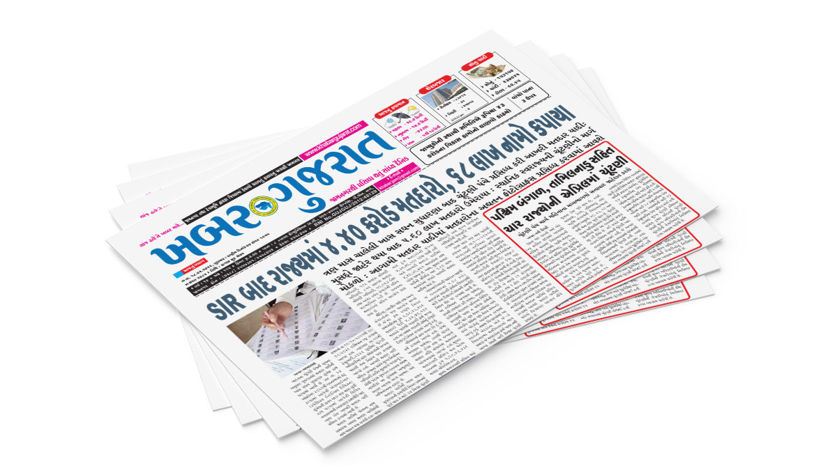 HomeepaperKhabar Gujarat Date 18-02-2026 Epaper epaper Khabar Gujarat Date 18-02-2026 Epaper February 18, 2026 Share FacebookTwitterWhatsAppTelegram - Advertisement - Share FacebookTwitterWhatsAppTelegram Previous articleવિશ્વની પ્રથમ હવાઈ ટપાલ સેવાને 115 વર્ષ પૂર્ણ…Next articleઅજય દેવગનનો ભત્રીજો અમન દેવગન જામનગર આવી પહોંચ્યો…. – VIDEO RELATED ARTICLES epaper Khabar Gujarat Date 17-02-2026 Epaper February 17, 2026 epaper Khabar Gujarat Date 16-02-2026 Epaper February 16, 2026 epaper Khabar Gujarat Date 14-02-2026 Epaper February 14, 2026 - Advertisment - Most Popular તે અમારા વિરૂઘ્ધ કેમ જુબાની આપી? કોર્ટ બિલ્ડીંગમાં યુવાનને ધમકી February 18, 2026 અજય દેવગનનો ભત્રીજો અમન દેવગન જામનગર આવી પહોંચ્યો…. – VIDEO February 18, 2026 વિશ્વની પ્રથમ હવાઈ ટપાલ સેવાને 115 વર્ષ પૂર્ણ… February 18, 2026 દેવભૂમિ દ્વારકા જિલ્લાની આખરી મતદારયાદી પ્રસિદ્ધ કરાઇ February 18, 2026 Load more