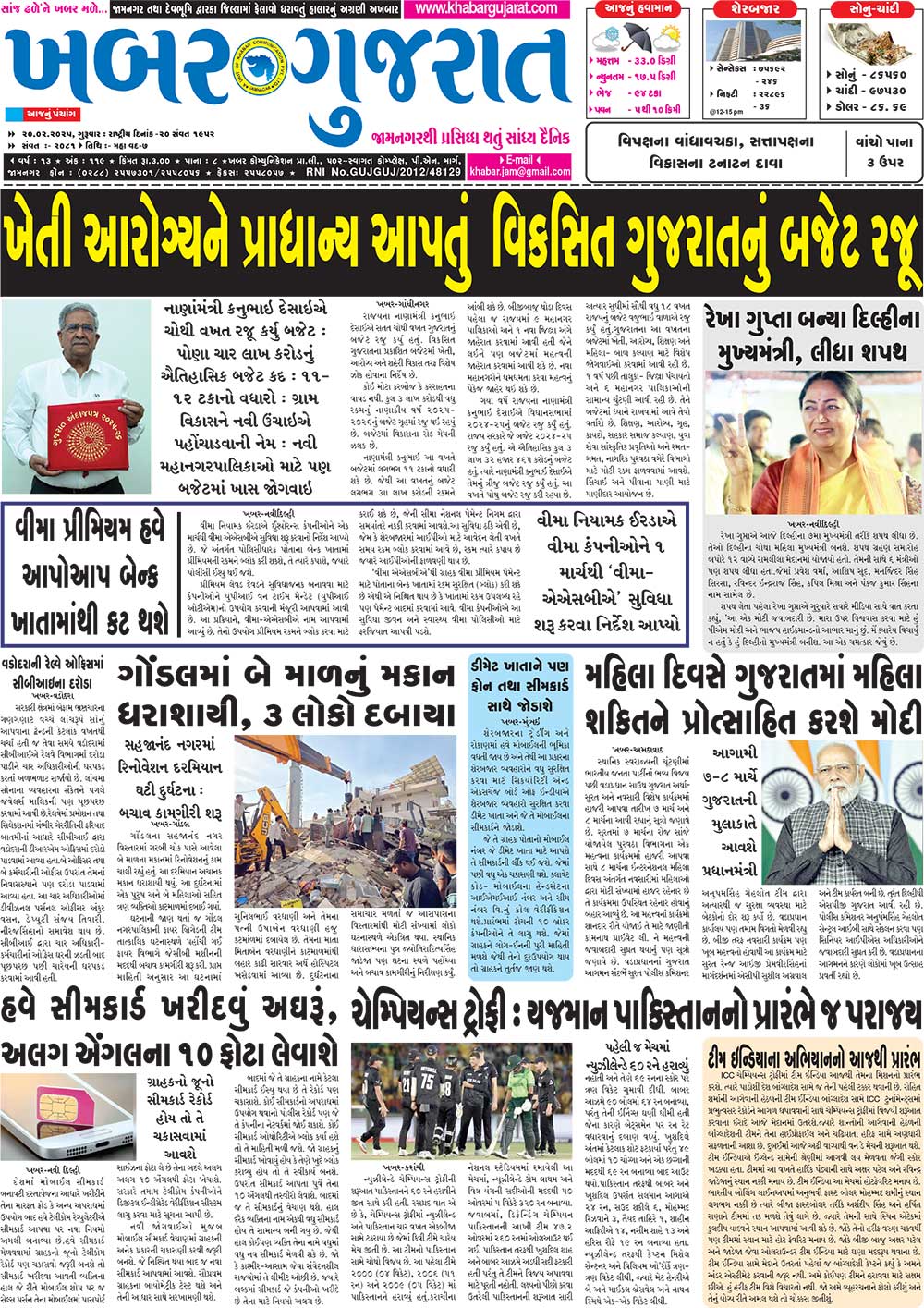 HomeepaperKhabar Gujarat Date 20-02-2025 Epaper epaper Khabar Gujarat Date 20-02-2025 Epaper February 20, 2025 Share FacebookTwitterWhatsAppTelegram - Advertisement - Share FacebookTwitterWhatsAppTelegram Previous articleજામનગરના વેપારીની પેઢીમાં રૂા.37 કરોડના બીલો બનાવી નાખ્યાNext articleજામનગરમાં પ્રૌઢ એન તેના પુત્ર સહિત ત્રણ વ્યક્તિઓ ઉપર હુમલો RELATED ARTICLES epaper Khabar Gujarat Date 05-12-2025 Epaper December 5, 2025 epaper Khabar Gujarat Date 04-12-2025 Epaper December 4, 2025 epaper Khabar Gujarat Date 03-12-2025 Epaper December 3, 2025 - Advertisment - Most Popular જામનગરમાં જુતાકાંડ અંગે શું કહ્યું ગોપાલ ઈટાલીયાએ..?? – VIDEO December 5, 2025 જામનગરની સભામાં AAPના ધારાસભ્ય ગોપાલ ઈટાલીયા પર બુટ નો ઘા…. – VIDEO December 5, 2025 જામનગરમા ચૂંટણી પહેલા કોંગ્રેસને મોટો ઝટકો, AAPમાં મોટી સંખ્યામા કોગ્રેસના કાર્યકરો જોડાયા – VIDEO December 5, 2025 આવતીકાલે ઇલેક્ટ્રિક ફોર્મ્યુલા કારની રેસ થશે. શું ભારતીય ટીમ સારું પ્રદર્શન કરશે? બધાની નજર આ રેસર્સ પર છે. December 5, 2025 Load more
