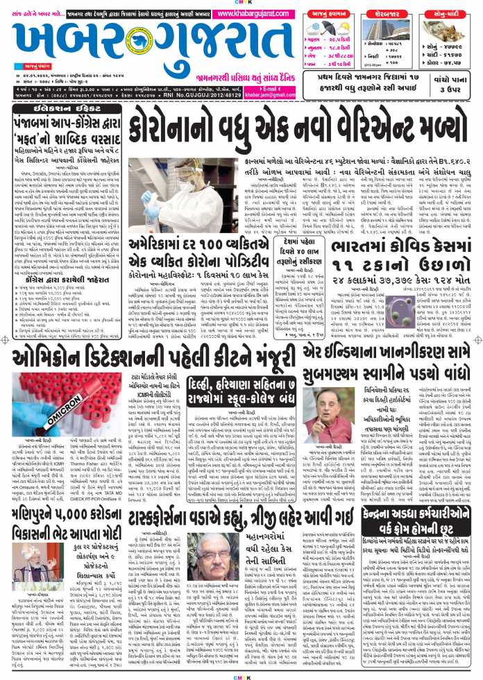 HomeepaperKhabar Gujarat dt.04-01-2022 epaper Khabar Gujarat dt.04-01-2022 January 6, 2022 Share FacebookTwitterWhatsAppTelegram - Advertisement - Share FacebookTwitterWhatsAppTelegram Previous articleમુસાફરો ઘટતાં જામનગર-મુંબઇ-રાજકોટ ફલાઇટ મર્જ કરાઇNext articleKhabar Gujarat dt.05-01-2022 RELATED ARTICLES epaper Khabar Gujarat Date 05-12-2025 Epaper December 5, 2025 epaper Khabar Gujarat Date 04-12-2025 Epaper December 4, 2025 epaper Khabar Gujarat Date 03-12-2025 Epaper December 3, 2025 - Advertisment - Most Popular જામનગરમાં જુતાકાંડ અંગે શું કહ્યું ગોપાલ ઈટાલીયાએ..?? – VIDEO December 5, 2025 જામનગરની સભામાં AAPના ધારાસભ્ય ગોપાલ ઈટાલીયા પર બુટ નો ઘા…. – VIDEO December 5, 2025 જામનગરમા ચૂંટણી પહેલા કોંગ્રેસને મોટો ઝટકો, AAPમાં મોટી સંખ્યામા કોગ્રેસના કાર્યકરો જોડાયા – VIDEO December 5, 2025 આવતીકાલે ઇલેક્ટ્રિક ફોર્મ્યુલા કારની રેસ થશે. શું ભારતીય ટીમ સારું પ્રદર્શન કરશે? બધાની નજર આ રેસર્સ પર છે. December 5, 2025 Load more