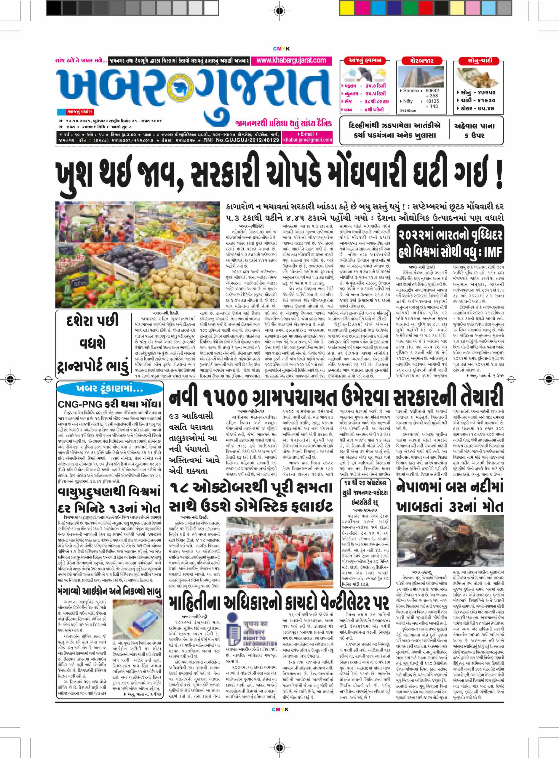 HomeepaperKhabar Gujarat dt.13-10-2021 epaper Khabar Gujarat dt.13-10-2021 October 13, 2021 Share FacebookTwitterWhatsAppTelegram - Advertisement - Tagskhabar gujaratnews Share FacebookTwitterWhatsAppTelegram Previous articleમંગાવ્યો આઇફોન અને નિકળ્યો સાબુNext articleવાયુ પ્રદુષણથી વિશ્વમાં દર મિનિટે 13નાં મોત RELATED ARTICLES epaper Khabar Gujarat Date 05-12-2025 Epaper December 5, 2025 epaper Khabar Gujarat Date 04-12-2025 Epaper December 4, 2025 epaper Khabar Gujarat Date 03-12-2025 Epaper December 3, 2025 - Advertisment - Most Popular જામનગરમાં જુતાકાંડ અંગે શું કહ્યું ગોપાલ ઈટાલીયાએ..?? – VIDEO December 5, 2025 જામનગરની સભામાં AAPના ધારાસભ્ય ગોપાલ ઈટાલીયા પર બુટ નો ઘા…. – VIDEO December 5, 2025 જામનગરમા ચૂંટણી પહેલા કોંગ્રેસને મોટો ઝટકો, AAPમાં મોટી સંખ્યામા કોગ્રેસના કાર્યકરો જોડાયા – VIDEO December 5, 2025 આવતીકાલે ઇલેક્ટ્રિક ફોર્મ્યુલા કારની રેસ થશે. શું ભારતીય ટીમ સારું પ્રદર્શન કરશે? બધાની નજર આ રેસર્સ પર છે. December 5, 2025 Load more