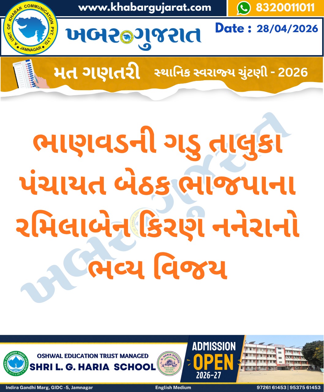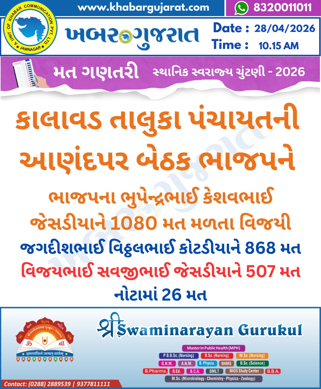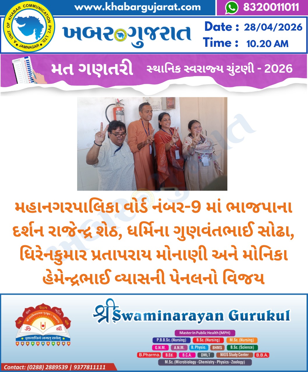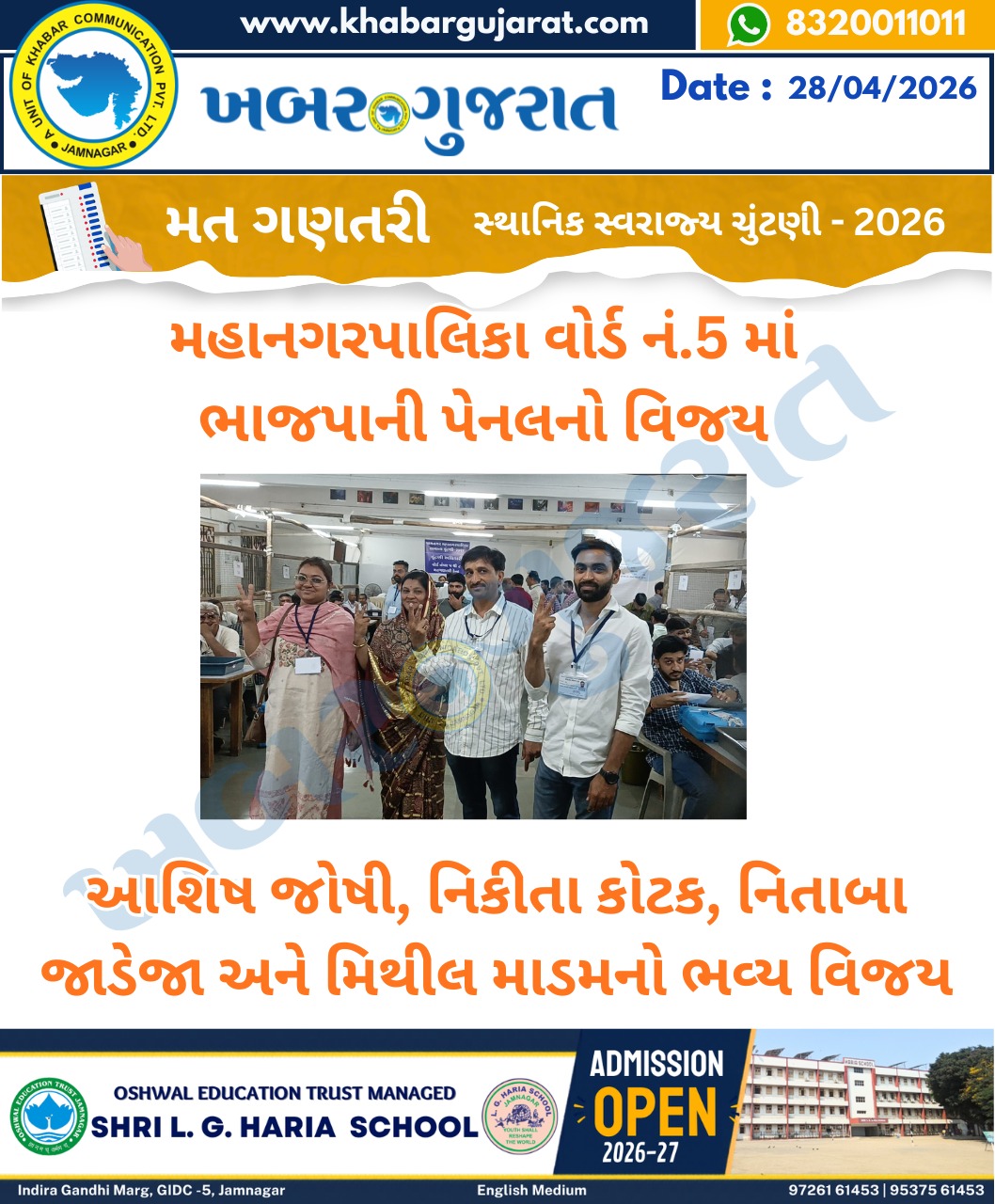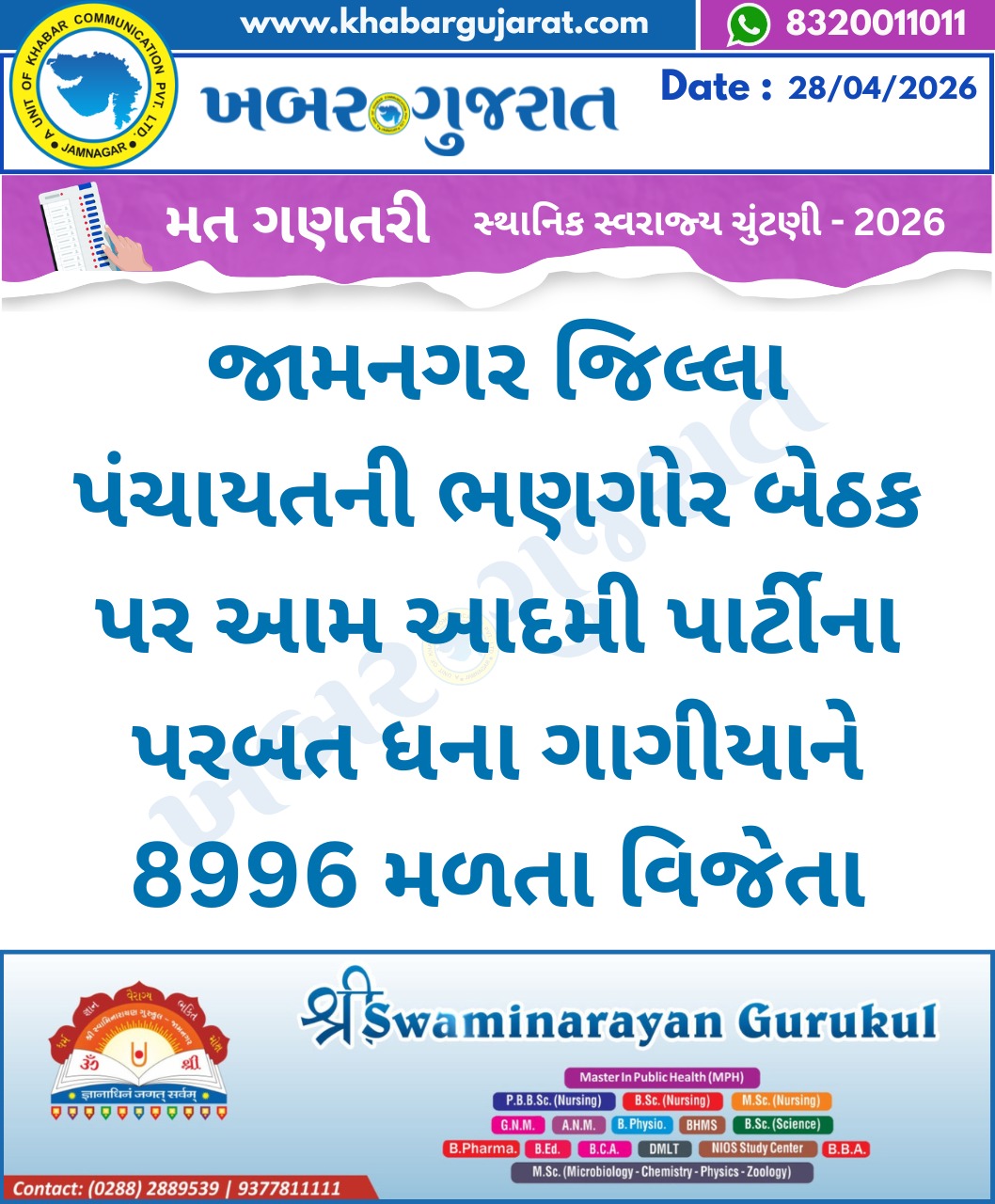 સ્થાનિક સ્વરાજ્ય ચુંટણીના પરિણામ – Khabar Gujarat LIVE Updates….