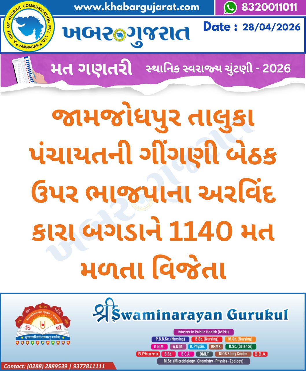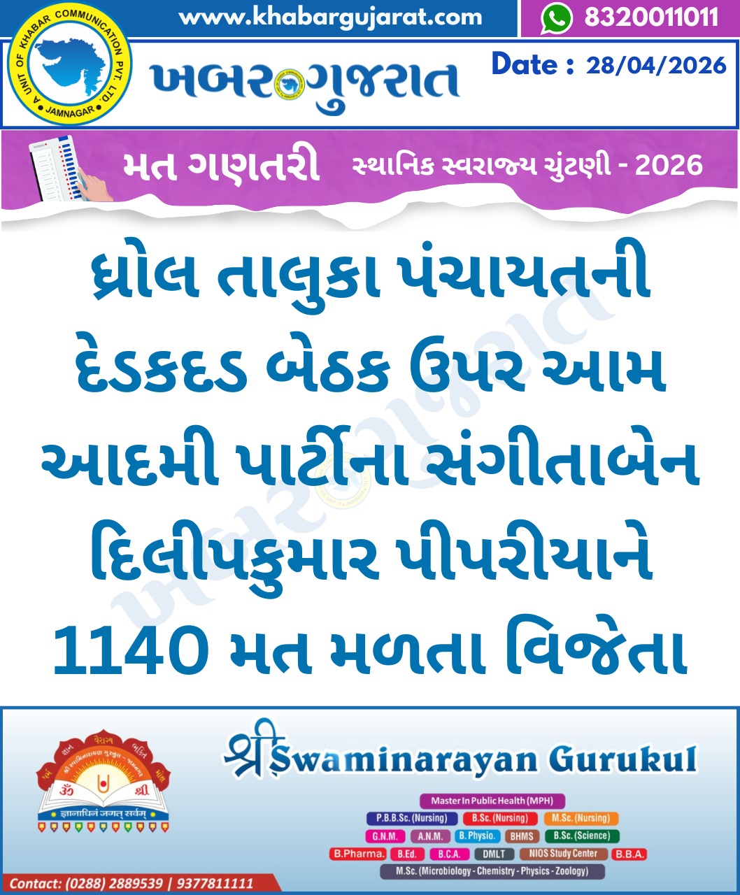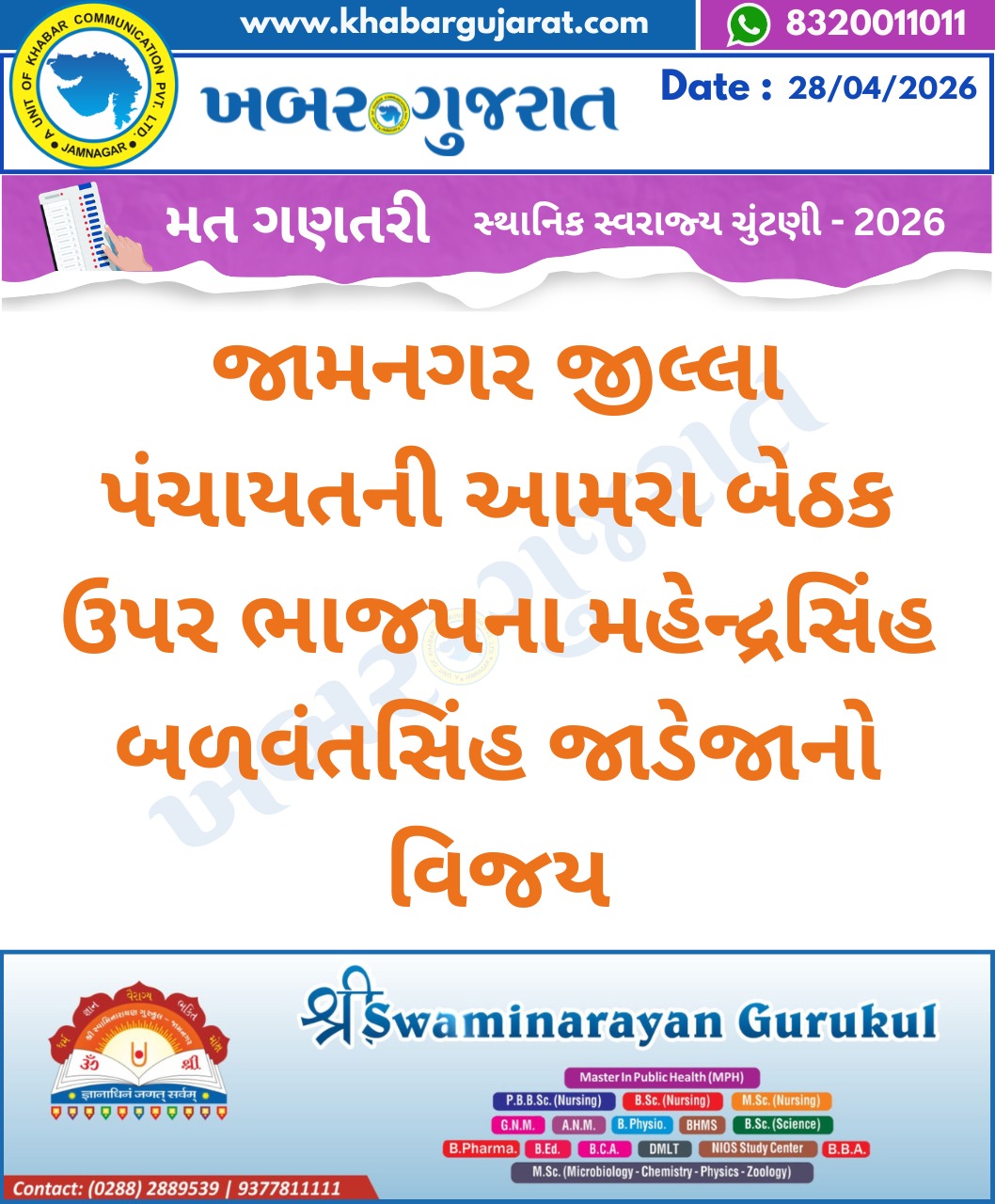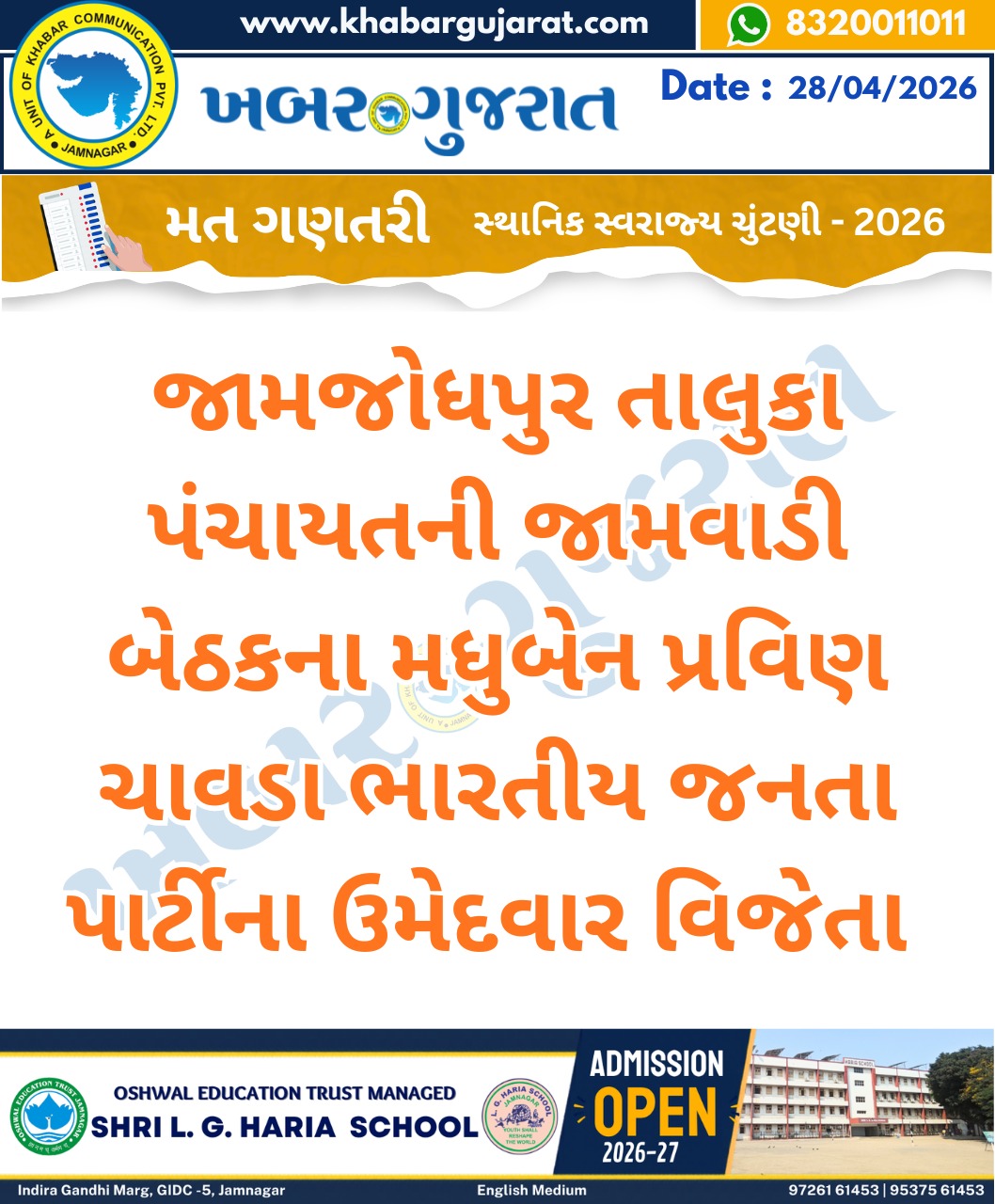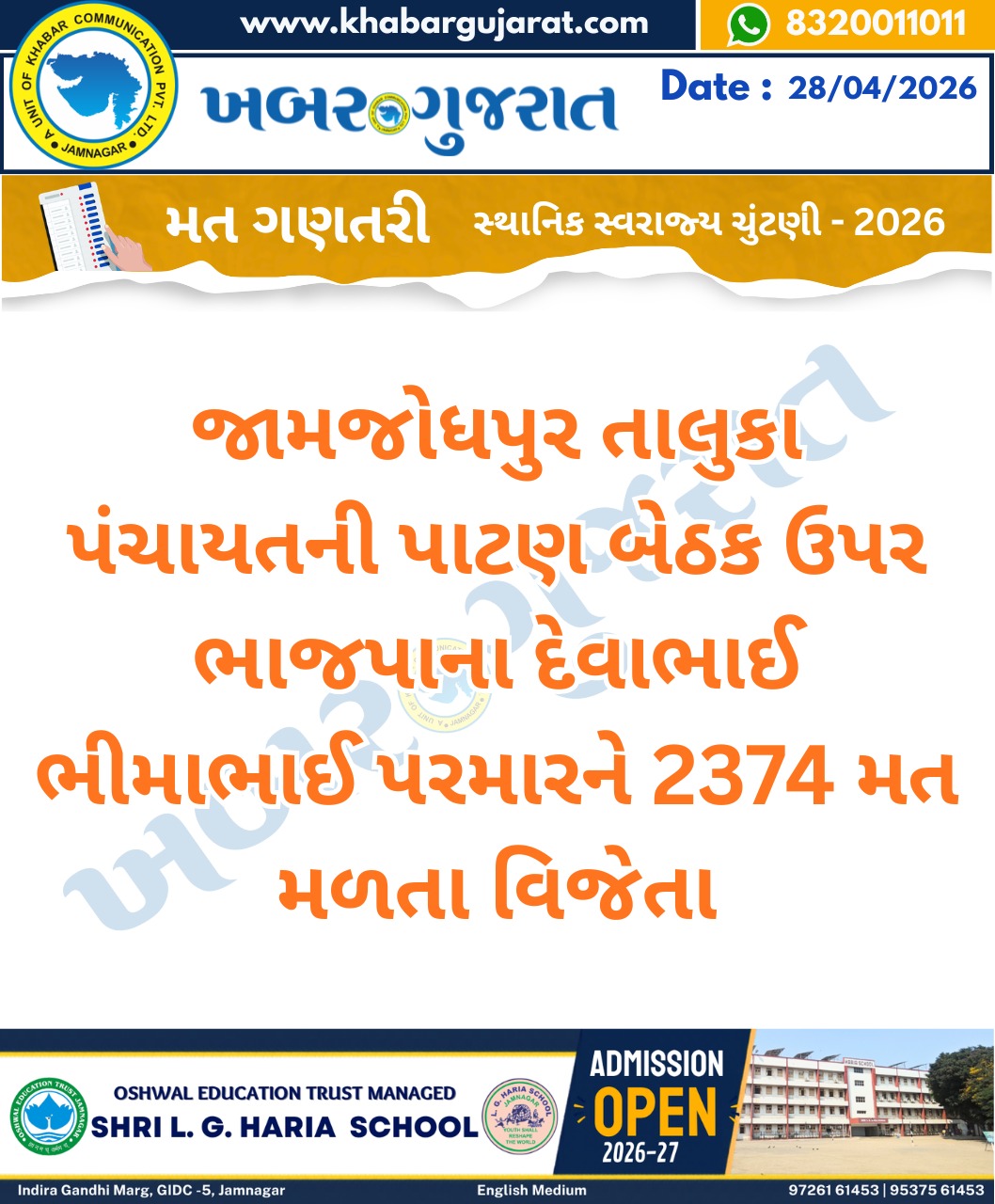 સ્થાનિક સ્વરાજ્ય ચુંટણીના પરિણામ – Khabar Gujarat LIVE Updates….