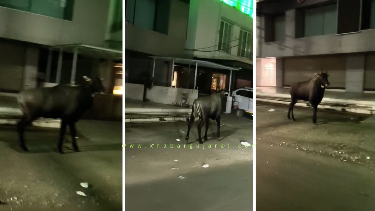 આ અંગે લોકોએ ફોનમાં વિડીયો બનાવ્યો હતો. જે પણ વાયરલ થયો હતો. જામનગર શહેરના પોષ વિસ્તાર એવા બેડી બંદર રોડ પર આવેલ એક પીઝા પાર્લર નજીક ગઇકાલે રાત્રીના સમયે રોઝડુ આટાંફેરા કરતું હોવાનું સામે આવ્યું છે. મોડી રાત્રે આ ઘટના કેટલાક લોકોના ઘ્યાનમાં આવી હતી. શહેરી વિસ્તારમાં રોઝડુ આટાં મારતા શ્વાન પણ એકઠા થઇ ગયા હતાં અને રોઝડાને જોઇને જોર જોરથી ભસવા લાગતા વિસ્તારમાં લોકો પણ જાગી ગયા હતાં. આ અંગે વન વિભાગને જાણ કરવામાં આવતા વન વિભાગ દ્વારા કાર્યવાહી હાથ ધરી હતી.