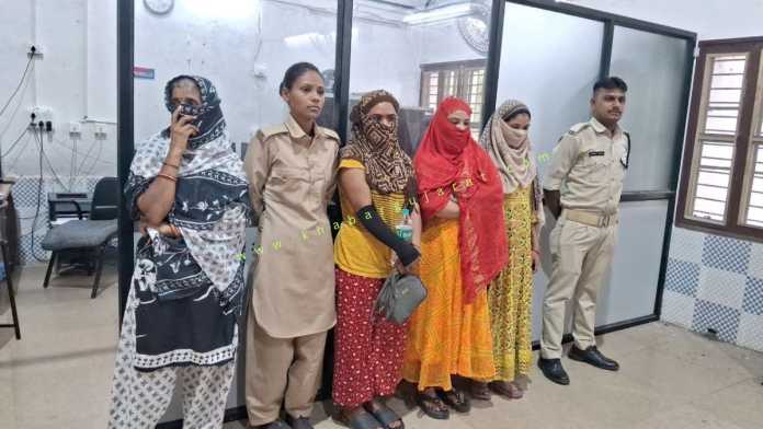 આ રેઇડ દરમ્યાન મહિલાઓ પાસે વેશ્યાગિરીનો ધંધો કરાવી કમિશન લેતાં સંચાલક પ્રૌઢા અને ત્રણ મહિલા સહિત ચાર વ્યક્તિઓને રૂા. 5020ની કિંમતના નિરોધના 502 પેકેટ, રૂા. 6300ની રોકડ સહિત કુલ રૂા. 11,320ની કિંમતના મુદામાલ સાથે ઝડપી લીધા હતા.