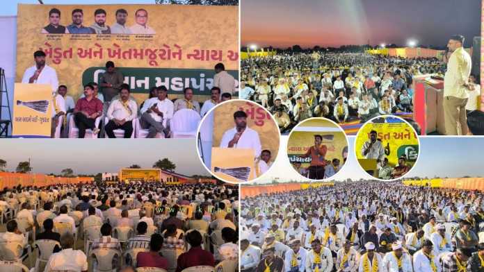 ત્યારબાદ આમ આદમી પાર્ટીના જામજોધપુરના ધારાસભ્ય હેમંત ખવાએ હજારોની સંખ્યામાં ઉપસ્થિત ખેડૂતો સમક્ષ પોતાની વાત રજૂ કરતા જણાવ્યું હતું કે, છેલ્લા બે વર્ષથી ખેડૂતોને મોઢે આવેલો કોડીયો છીનવાઈ જાય છે. ગત વર્ષે પણ જ્યારે ખેડૂતોનો પાક બરબાદ થયો ત્યારે સરકારે ખૂબ મોડું મોડું પેકેજ જાહેર કર્યું હતું. સરકારે આ વખતે પણ પેકેજ જાહેર કર્યું પરંતુ ગઈ વખત પણ એક હેકટરે 22,000 આપ્યા હતા અને બે હેક્ટર દીઠ 44000 આપ્યા હતા તો એ પ્રમાણે આ વખતે પણ 44,000 જ આપ્યા છે, તો આ ઐતિહાસિક પેકેજ કઈ રીતે કહી શકાય. અમારું ગુજરાત સરકારને એટલું જ કહેવું છે કે પંજાબની આમ આદમી પાર્ટીની સરકારે જેટલું વળતર પંજાબના ખેડૂતોને આપ્યું તમારે એનો જ એકવાર અભ્યાસ કરવાની જરૂર હતી. પંજાબની આમ આદમી પાર્ટીની સરકારે એક હેક્ટર દીઠ 50 હજાર રૂપિયાની સહાય જાહેર કરી અને બે હેક્ટરની મર્યાદામાં સહાય જાહેર કરવામાં આવી મતલબ એક ખેડૂતને એક લાખ રૂપિયાની સહાય મળશે. પંજાબની આમ આદમી પાર્ટીની સરકારે ખેડૂતોની સાથે સાથે ખેત મજૂરોને પણ 7,200 રૂપિયાની સહાય ચૂકવવામાં આવી. દેશમાં પહેલીવાર ખેત મજૂરો અને ભાગ્યાઓની ચિંતા કરી છે તો એ આમ આદમી પાર્ટીની સરકારે ચિંતા કરી છે. પંજાબમાં એક જ મહિનામાં ખેડૂતોના ખાતામાં પૈસા આવવા લાગ્યા જ્યારે આપણે ગઈ વખતે અતિવૃષ્ટિ થઈ હતી તેના વળતરના રૂપિયા આવવામાં 11 મહિના લાગી ગયા હતા અને સાંભળવામાં આવ્યું છે કે ઘણા ખેડૂતોના ખાતામાં તો હજુ સુધી પણ ગઈ સાલના વળતરના પૈસા આવ્યા નથી. કૃષિ મંત્રીએ યાદ રાખવું જોઈએ કે ભાવનગરના ખેડૂતોના મત લઈને તેઓ મંત્રી પદ સુધી પહોંચ્યા છે.