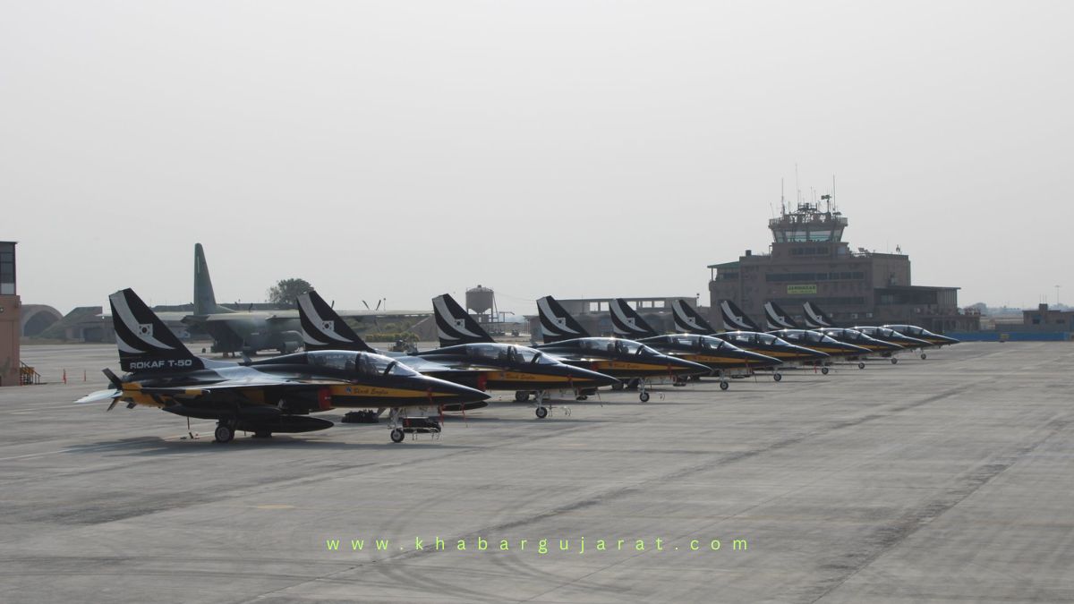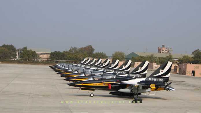 આ અંગેની વિગત મુજબ જામનગર એરફોર્સનું મહત્ત્વ દેશની સુરક્ષા વ્યવસ્થા માટે ઘણું અગત્યનું છે. યુદ્ધના સમયે જામનગર એરફોર્સની ભૂમિકા મહત્ત્વની બની રહેતી હોય છે. ત્યારે આ એરફોર્સ પર આજે કોરિયા રિપબ્લિક એરફોર્સ ટૂકડીના વિમાનોને જામનગરના એરફોર્સ પર ટૂંકા રોકાણ માટેની પરમીશન આપવામાં આવી હતી. કોરિયા એરફોર્સના બ્લેક ઇગલ્સ એરોબેટિક ટીમના 9 ટી-50બી વિમાન અને એક સી-130 વિમાનનું લેન્ડીંગ થયું હતું. આ કોરિયન વિમાનો માટે કસ્ટમ અને ઇમિગ્રેશન ડિપાર્ટમેન્ટ પણ ઉપસ્થિત રહ્યું હતું.