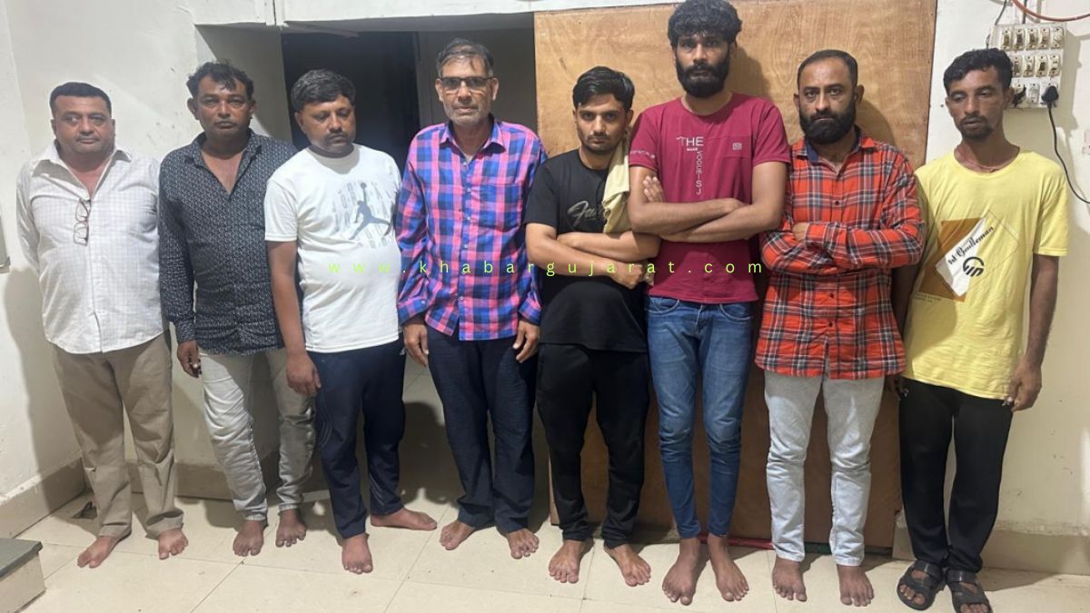 જુગારના દરોડાની વિગત મુજબ પ્રથમ દરોડો ધ્રોલ તાલુકાના રોજિયા ગામની સીમમાં આવેલી ખેતરની ઓરડીમાં ઘોડીપાસાનો જુગાર રમાતો હોવાની અજયભાઇ વીરડા, ભયપાલસિંહ જાડેજા, સુમિતભાઇ શિયાળને મળેલી બાતમીના આધારે રોજિયા ગામની સીમમાં સુખદેવસિંહ મહેન્દ્રસિંહ વાઢેર અને સંજયસિંહ જશુભા વાઢેરની ભોગવટાની વાડીની ઓરડીમાં બહારથી માણસો બોલાવી, નાલ ઉઘરાવી જુગાર રમાડતા હોવાની બાતમીના આધારે પોલીસ અધિક્ષક પ્રેમસુખ ડેલુની સૂચનાથી પીઆઈ વી.એમ. લગારીયા, પીએસઆઇ સી. એમ. કાંટેલિયા, પી.એન. મોરી તથા સ્ટાફના હરપાલસિંહ સોઢા, ભરતભાઈ પટેલ, નાનજીભાઈ પટેલ, શરદભાઈ પરમાર, દિલીપભાઈ તલાવાડિયા, હિતેન્દ્રસિંહ જાડેજા, અરજણભાઈ કોડીયાતર, મયુદીનભાઈ સૈયદ, ક્રિપાલસિંહ જાડેજા, કાસમ બ્લોચ, નિર્મળસિંહ જાડેજા, કિશોરભાઈ પરમાર, ઋષિરાજસિંહ વાળા, મયુરસિંહ પરમાર, ભરતભાઇ ડાંગર, ઘનશ્યામભાઇ ડેરવાડિયા, સુમિતભાઇ શિયાર, સુરેશભાઇ માલકિયા, ધર્મેન્દ્રસિંહ જાડેજા, દયારામ ત્રિવેદી, બિજલભાઈ બારાસરા, ધર્મેન્દ્રસિંહ જાડેજા, ભારતીબેન ડાંગર સહિતના સ્ટાફે રેઇડ કરી હતી. રેઇડ દરમ્યાન એલસીબીની ટીમએ સુખદેવસિંહ મહેન્દ્રસિંહ વાઢેર, ભરત વજશી ડાંગર, અનવરમિયા આમદમિયા ખફી, જાવેદ અલીમામદ બલોચ, મુસ્તફા કાસમ ખીરા, મહેશ નરશી થાપા, આસિફ યુનુસ ખફી, અઝીઝખાન આમદખાન સરવાણી સહિતના આઠ શખ્સોને રૂા. 2,02,850ની રોકડ રકમ અને રૂા. 40 હજારની કિંમતના આઠ નંગ મોબાઇલ, રૂા. સાત લાખની કિંમતની કાર સહિત કુલ રૂપિયા 9,42,850નો મુદામાલ કબ્જે કરી નાશી ગયેલા હિતેન્દ્રસિંહ ઉર્ફે મિથુન અભેસંગ ઝાલા, સંજયસિંહ જશુભા જાડેજા, સિઘ્ધરાજસિંહ જટુભા જાડેજા અને દિનેશ સહિતના નાશી ગયેલા ચાર શખ્સો સહિતના 12 શખ્સો વિરૂઘ્ધ ગુનો નોંધી ધ્રોલ પોલીસ સ્ટેશનને સોંપી આપ્યા હતા.