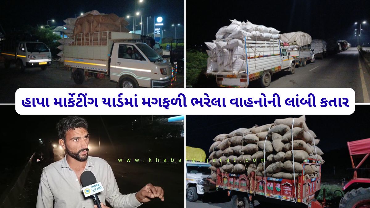 હાપા માર્કેટીંગ યાર્ડમાં મગફળી ભરેલા વાહનોની લાંબી કતાર – VIDEO
