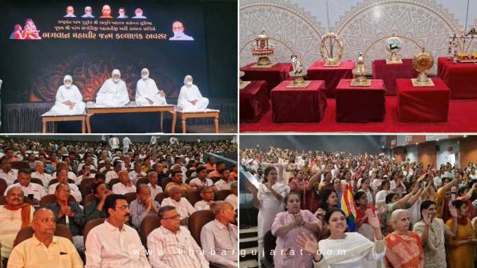 જામનગર તેજપ્રકાશ ઉપાશ્રય, શ્રી બેંક કોલોની સંઘમાં રાષ્ટ્રસંત પરમ ગુરુદેવ શ્રી નમ્રમુનિ મહારાજ સાહેબના સુશિષ્યા પૂજ્ય શ્રી પરમ સંબોધિજી મહાસતીજી આદિ ઠાણાઓના સાંનિધ્યે આયંબિલ ઓળી પર્વના સાતમા દિવસે ભગવાન મહાવીર જન્મ કલ્યાણક અવસરને ઉલ્લાસભાવે ઉજવવા જામનગરના ટાઉનહોલમાં ઓડિટોરિયમમાં વિશાળ સંખ્યામાં ભાવિકોની સાથે અનેક અગ્રણી મહાનુભાવો ઉપસ્થિત રહ્યાં હતાં.