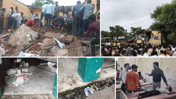 રાજસ્થાનના ઝાલાવાડમાં જિલ્લાના મનોહર પોલીસ સ્ટેશન વિસ્તારના પીપલોદીમાં સરકારી ઉચ્ચ પ્રાથમિક શાળાની છત અચાનક તુટી પડી વર્ગમાં હાજર વિદ્યાર્થીઓ તેની નીચે દટાઈ ગયા હતાં. મળતી પ્રાથમિક માહિતી મુજબ ચાર બાળકોના મોત થયા છ અને ઘણાં બાળકો દટાયા હોવાની આશંકા છે. અકસ્માત બાદ 17 બાળકો ઘાયલ થયા હોવાની માહિતી સામે આવી છે. ત્યારે ઘણાં બાળકો ગંભીર રીતે ઘાયલ થયા હોવાનું સામે આવ્યું છે. વર્ગમાં લગભગ 60 જેટલા બાળકો હાજર હતાં. જેમાંથી 25 બાળકો દટાયા હોવાની આશંકા છે. ઘટના ઘટતાની સાથે જ વિસ્તારના લોકો મદદ માટે દોડી આવ્યા હતાં. ઘટનાસ્થળે લોકોની ભીડ એકઠી થઈ ગઇ હતી અને લોકોએ બાળકોને બચાવવાનો પ્રયાસ શરૂ કર્યો હતો. આસપાસ સવત્ર કાટમાળ છવાયો છે.