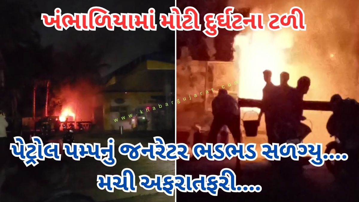 આ સમગ્ર પ્રકરણની વિગત મુજબ ખંભાળિયાના ટ્રાફિકથી વ્યસ્ત એવા નગર ગેઈટ વિસ્તારમાં આવેલા જી.સી. એન્ડ કંપની નામના પેટ્રોલ પંપમાં પાછળના ભાગે આવેલા જનરેટર સેટના રૂમમાં સાંજે આશરે સવા સાત વાગ્યાના સુમારે એકાએક આગ લાગી હતી. આ આગ લાગતા પેટ્રોલ પંપના સ્ટાફે ફાયર વિભાગને જાણ કરી હતી. આટલું જ નહીં, પેટ્રોલ પંપમાં રહેલા આગ બુઝાવવાના વિવિધ સાધનોની મદદથી તેઓએ આગ બુઝાવવાની કાર્યવાહી પણ કરી હતી.