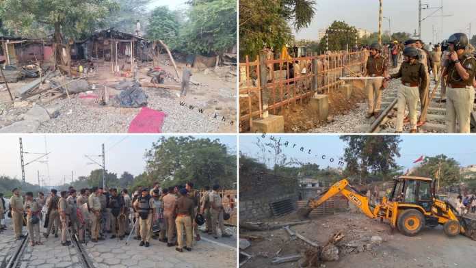 તે માટે રેલવે વિભાગ દ્વારા આગોતરા સલામતીના પગલાં તરીકે રેલવે ટ્રેકથી આશરે 20 ફુટ સુધીના વિસ્તારમાં ખડકાયેલી ઝૂંપડપટ્ટી અને બાવરીવાસમાં ખડકાયેલા 151 મકાનો પાડતોડ કરવા માટે પોલીસ અને રેલવે દ્વારા સંયુક્ત ડીમોલીશન કામગીરી હાથ ધરવામાં આવી છે. મળતી વિગત મુજબ આશરે 700 મીટર જેટલા વિસ્તારને આવરી લઇ ડીમોલીશન કામગીરી હાથ ધરવા માટે 10 જેટલા જેસીબી મશીનોનો ઉપયોગ કરવામાં આવી રહ્યો છે. ડીમોલીશન દરમ્યાન કાયદો અને વ્યવસ્થા જળવાઇ રહે તે માટે ઇન્ચાર્જ પોલીસ અધિક્ષક પ્રતિભાની ઉપસ્થિતિ સાથે પોલીસ અધિકારીઓ અને પોલીસ જવાનોની કડક સુરક્ષા વ્યવસ્થા ગોઠવી દેવામાં આવી છે. જો કે, આ ડીમોલીશન કામગીરી શાંતિપૂર્ણ થઇ રહી હોવાનું ઇન્ચાર્જ પોલીસ અધિક્ષક પ્રતિભા દ્વારા જણાવાયું હતું.