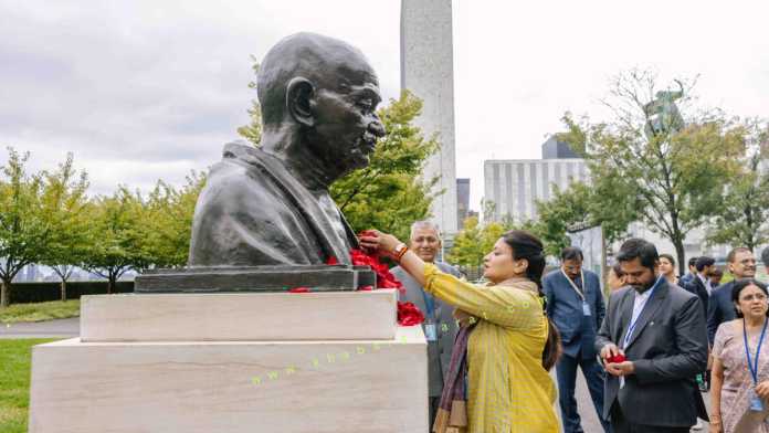 યુનાઇટેડ નેશન (સંયુકત રાષ્ટ્ર સંઘ)ની સંયુકત પરીષદમાં ભાગ લેવા અમેરીકા ગયેલા જામનગર લોકસભાના સાંસદ પૂનમબેન માડમે ન્યુયોર્કમાં સાથી સાંસદો સાથે રાષ્ટ્રપિતા મહાત્મા ગાંધીની પ્રતિમાને પુષ્પાંજલી અર્પણ કરી વંદન કર્યા હતાં.