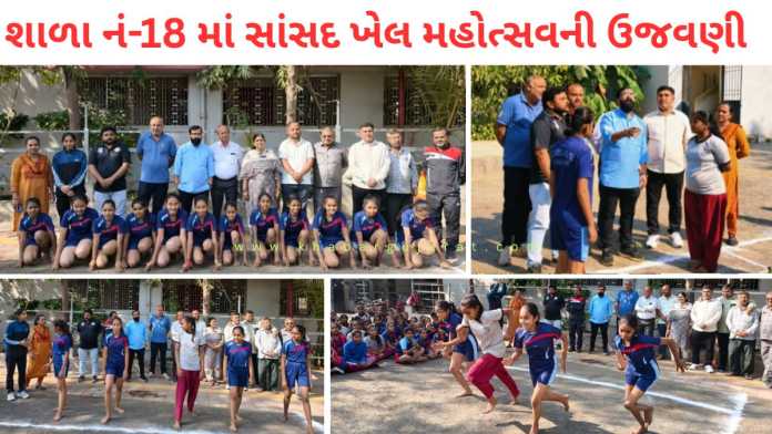 જામનગરમાં સાંસદ ખેલ મહોત્સવની ઉજવણી થઈ રહી છે જે અંતર્ગત શાળા નં-18 માં વિવિધ સ્પર્ધાઓનું આયોજન કરવામાં આવ્યું હતું. જેમાં શાળાના વિદ્યાર્થીઓએ ઉત્સાહભેર ભાગ લીધો હતો.