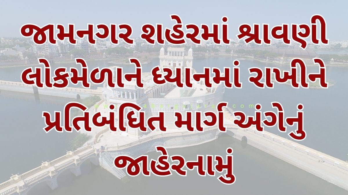જામનગર શહેરમાં શ્રાવણી લોકમેળાને ધ્યાનમાં રાખીને પ્રતિબંધિત માર્ગ અંગેનું જાહેરનામું