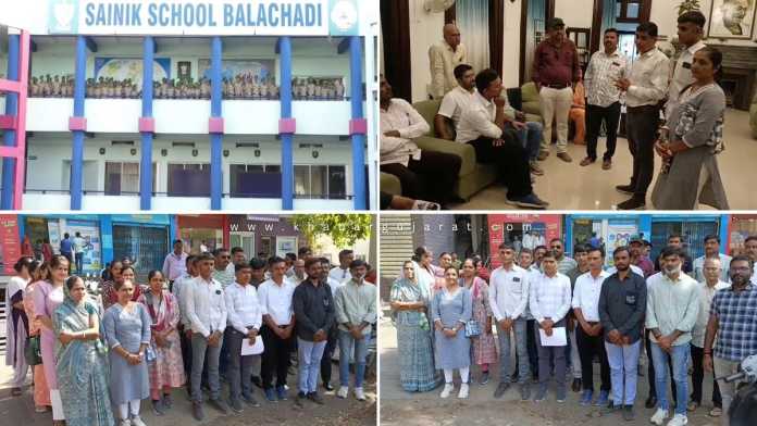 જામનગરની પ્રસિદ્ધ અને શિસ્ત માટે જાણીતી સૈનિક સ્કૂલ બાલાચડી હાલ અનેક વિવાદોની વચ્ચે આવી છે. શાળામાં અભ્યાસ કરતાં વિદ્યાર્થીઓને સતત પડતી મુશ્કેલીઓ અંગે જામનગર, રાજકોટ, સોમનાથ, જુનાગઢ તેમજ મહારાષ્ટ્ર જેવા વિસ્તારોમાંથી આવેલા 50થી વધુ વાલીઓએ આજે રાજ્યના શિક્ષણ રાજ્યમંત્રી રીવાબા જાડેજાને મળી વિસ્તૃત રજૂઆત કરી હતી.