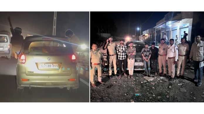 અહીંના ડીવાયએસપી હાર્દિક પ્રજાપતિના માર્ગદર્શન હેઠળ દેવભૂમિ દ્વારકા જિલ્લા ટ્રાફીક શાખાના પી.એસ.આઈ. વી.એમ. સોલંકી દ્વારા ટ્રાફિક શાખાની અલગ અલગ ટીમો બનાવીને દ્વારકામાં ફૂલડોલ ઉત્સવના અનુસંધાને પદયાત્રીઓ ચાલીને દ્વારકા જતા હોય, જેથી હાઈવે ઉપર સતત પેટ્રોલિંગ હાથ ધરવામાં આવ્યું છે. ત્યારે જાહેરમાં એક કારમાં સ્ટંટ કરતાં નબીરાઓ અંગેના ઉપરોક્ત અહેવાલોને અનુલક્ષીને ટ્રાફિક પીએસઆઈ વી.એમ. સોલંકી તથા તેમની ટીમ દ્વારા ખંભાળિયા – દ્વારકા નેશનલ હાઈવે રોડ, કુવાડીયા પાટીયા નજીકનો હોવાનું જણાય આવેલ હોય, જેથી ચાર અજાણ્યા ઇસમો વિરુદ્ધ ખંભાળિયા પોલીસ સ્ટેશન ખાતે ગુન્હો દાખલ કરીને વી.એમ.સોલંકી તથા એ.એસ.આઈ. કાબાભાઈ ચાવડા, એ.એસ.આઈ. શક્તિસિંહ જાડેજા, હેડ કોન્સ્ટેબલ દેવરાભાઈ પંડત, ખંભાળિયા પોલીસ સ્ટેશનના હેડ કોન્સ્ટેબલ રોહિતભાઈ થાનકી, કોન્સ્ટેબલ કરણભાઈ નાંઘાએ ખંભાળિયા ખાતેથી આ ચારેય શખ્સોને કાર સાથે ઝડપી લઈ, ધોરણસર કાર્યવાહી કરીને તમામને કાયદાનું ભાન કરાવ્યું હતું.