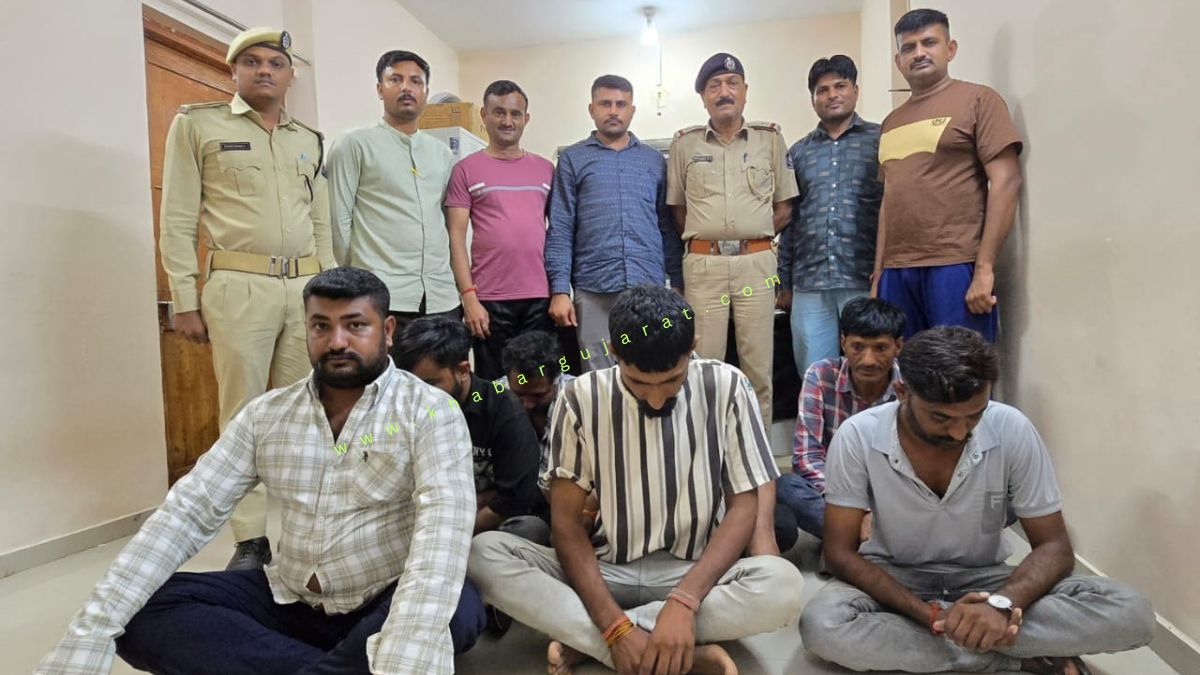 જુગાર દરોડાની વિગત મુજબ ખંભાળિયા તાલુકાના વડત્રા ગામે પી.આઈ. બી.જે. સરવૈયાના વડપણ હેઠળ સ્ટાફ દ્વારા હાથ ધરવામાં આવેલા નાઈટ પેટ્રોલિંગ દરમિયાન મળેલી બાતમીના આધારે વડત્રા ગામના ઝાપા પાસે તળાવની બાજુમાં આવેલા સાજણ આલા ચાવડાના કબજા ભોગવટાની વાડીના રહેણાંક મકાનમાં ચાલતા જુગારના અખાડા પર દરોડાની કાર્યવાહી કરવામાં આવી હતી.