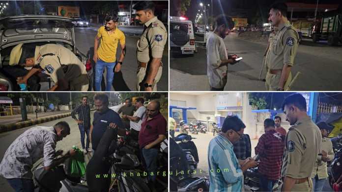 જામનગર શહેર તથા જીલ્લામાં કાયદો વ્યવસ્થા જળવાઇ રહે અને ગુનાખોરી અટકે તે માટે જામનગર જીલ્લા પોલીસ અધિક્ષક પ્રેમસુખ ડેલુ ના સીધ્ધા માર્ગદર્શન હેઠળ જામનગર જીલ્લા પોલીસ અધિક્ષક પ્રેમસુખ ડેલું ની સુચના થી સિટી-એ ડિવિઝન પોલીસ સ્ટેશન ના પીઆઇ નિકુંજસિંહ ચાવડા દ્વારા નાઈટ ટ્રાફિક ડ્રાઇવ શરૂ કરવામાં આવી છે. જેમાં ગતરાત્રી ના જામનગત શહેરના સિટી-એ ડિવિઝન પોલીસ સ્ટેશન હેઠળ આવેલા જુદા-જુદા વિસ્તારોમાં જેમકે પવન ચક્કી સર્કલ, ઓશવાળ હોસ્પિટલ સર્કલ અને દરબારગઢ વિસ્તારોમાં ટ્રાફીક ડ્રાઈવમાં વાહન ચાલકોના લાયસન્સ સહિતના કાગળોનું ચેકીંગ તેમજ ફોરવ્હીલોમાં બ્લેક કાચ હટાવવા, બાઈકમાં ત્રિપલ સવારી, ચાલુ વાહને મોબાઈલ પર વાત કરવી, ધુમ સ્ટાઇલ થી બાઈક ચલાવી રોમિયોગીરી કરતા વાહન ચાલકો અને ટ્રાફિક નિયમો ભંગ કરનારાઓ સામે દંડનીય કાર્યવાહી હાથ ધરવામાં આવી હતી. જેમાં ધ્વનિ પ્રદુષણ કરતા બુલેટ તથા બાઇક ચાલકો સામે કાયદેસરની કાર્યવાહી હાથ ધરવામાં આવી હતી. તેમજ 4 જેટલા બાઇક ડીટેઈન કરાયા હતા અને સંખ્યાબંધ લોકો પાસેથી રૂ.7500 હાજર દંડ વસુલ કરવામાં આવ્યો હતો. જામનગર પોલીસની આ કાર્યવાહી થી નિમયોનો ભંગ કરનારાઓ વાહન ચાલકોમાં ફફડાટ વ્યાપી ગયો છે.