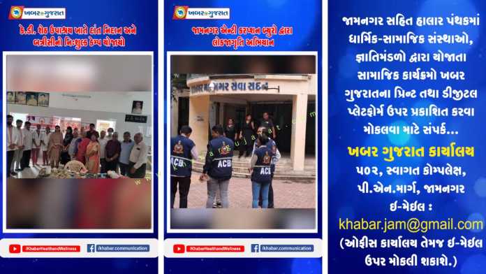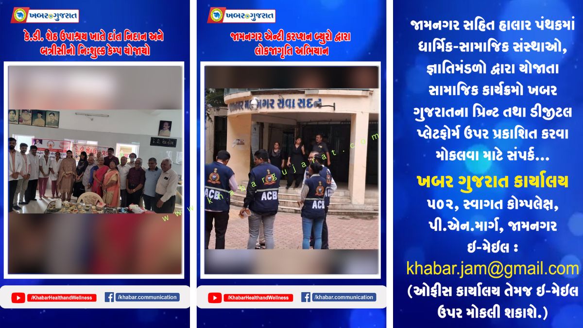 જામનગર સહિત હાલાર પંથકમાં ધાર્મિક-સામાજિક સંસ્થાઓ, જ્ઞાતિમંડળો દ્વારા યોજાતા સામાજિક કાર્યક્રમો ખબર ગુજરાતના પ્રિન્ટ તથા ડીજીટલ પ્લેટફોર્મ ઉપર પ્રકાશિત કરવા મોકલવા માટે સંપર્ક…