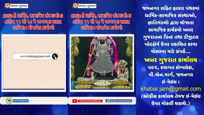 હાલારની ધાર્મિક, સામાજિક સંસ્થાઓના તારીખ 11 થી 18 મે 2025ના સપ્તાહ દરમિયાન યોજાયેલ કાર્યક્રમો
