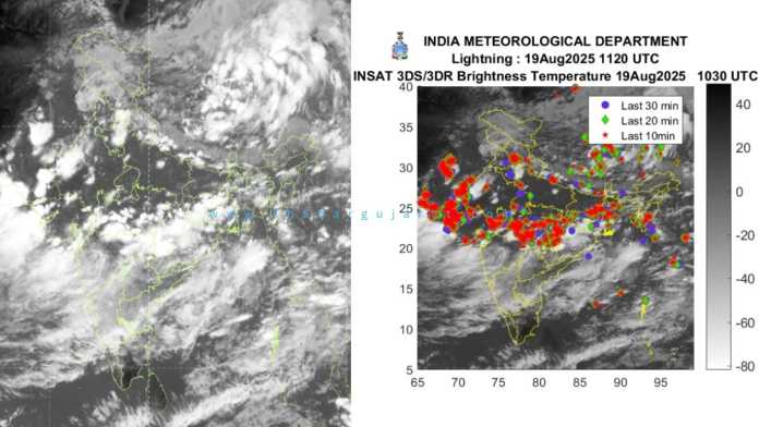 જ્યારે 18 થી 22 ઓગસ્ટ સુધી રાજ્યના કેટલાંક વિસ્તારોમાં ગાજવીજ સાથે વરસાદ થવાની શકયતાઓ હવામાન વિભાગે કરી છે. આજે અમરેલી, જૂનાગઢ, ગીર સોમનાથ, દીવ, નવસારી, વલસાડ, દમણ અને દાદરાનગર હવેલીમાં ભારેથી અતિભારે વરસાદને લઇને રેડ એલર્ટ જાહેર કરવામાં આવ્યું છે. જ્યારે અન્ય જિલ્લાઓમાં હળવા વરસાદની આગાહી કરવામાં આવી છે. રાજ્યમાં સક્રિય થયેલી ચાર વરસાદી સિસ્ટમને કારણે આગામી દિવસોમાં પણ ભારેથી અતિભારે વરસાદની શકયતા છે.