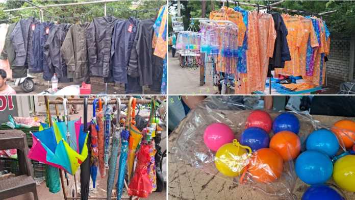 જામનગરમાં ક્રિકેટના બોલમાં ડિસ્પોઝેબલ રેઇનકોટની નવી વેરાયટીઓ બજારમાં આવી છે. બાળકો માટે ક્રિકેટના શોખને ઘ્યાને લઇ આ વેરાયટી બજારમાં જોવા મળી રહી છે. આ ઉપરાંત છેલ્લા દોઢેક વર્ષથી બોટલ અમ્બ્રેલા પણ બજારમાં જોવા મળી રહી છે. જે દેખાવમાં પાણીની બોટલ જેવી લાગે છે. પરંતુ અંદર છત્રી હોય છે. જે પણ છેલ્લા થોડાં સમયથી લોકોની પસંદગી બની છે. આ ઉપરાંત અગાઉ બાળકો માટે કાર્ટૂન કેરેક્ટરની ડીઝાઇનોવાળી છત્રીઓ, કેપ્સુલ અમ્બ્રેલા જેવી અનેક વેરાયટીઓ પણ જોવા મળે છે. આ સાથે અગાઉ જે લાંબા રેઇનકોટ આવતા હતા તેમાં હવે પેન્ટ-શર્ટ રેઇનકોટ ડિમાન્ડ વધુ હોય તે પણ ભારે માંગ હોય બજારમાં વિવિધ વેરાયટીમાં ઉપલબ્ધ છે. આ ઉપરાંત છેલ્લા બે થી ત્રણ વર્ષ દરમ્યાન રેઇનકોટ અને છત્રીમાં ભાવવધારો ન થયો હોવાનું પણ વેપારીઓ જણાવી રહ્યાં છે. જામનગરમાં રેઈનકોટમાં 100 રૂપિયાથી 1000 રૂપિયા સુધીમાં વિવિધ વેરાયટીઓ તથા છત્રીમાં રૂા.50 થી 400 રૂપિયા સુધીના ભાવોમાં વેરાયટીઓ ઉપલબ્ધ છે.