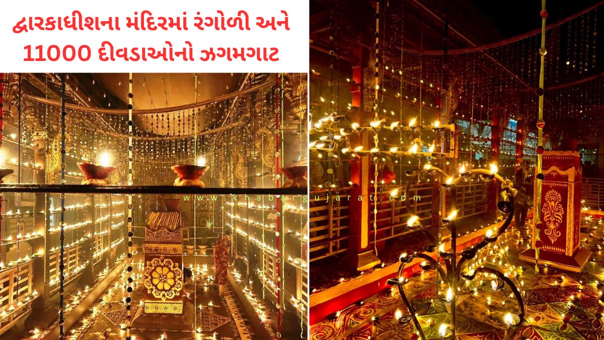 દ્વારકાધીશના મંદિરમાં રંગોળી અને 11000 દીવડાઓનો ઝગમગાટ