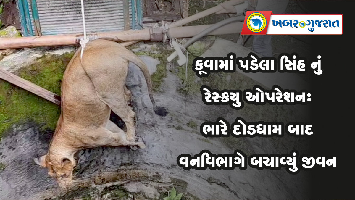 તાલાલા તાલુકાના ધાવગીર ગામે એક સિંહ અકસ્માતે ઊંડા કૂવામાં પડી ગયો હતો. કૂવામાં પાણી ભરેલું હોવાથી સિંહ ફસાઈ ગયો હતો અને બહાર આવી શકતો ન હતો. આ દ્રશ્ય જોઈ ગ્રામજનો ગભરાઈ ગયા અને તરત જ વનવિભાગને જાણ કરી.