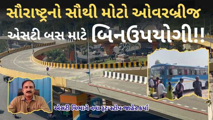સૌરાષ્ટ્રનો સૌથી મોટો ઓવરબ્રીજ એસટી બસ માટે બિનઉપયોગી!! – VIDEO