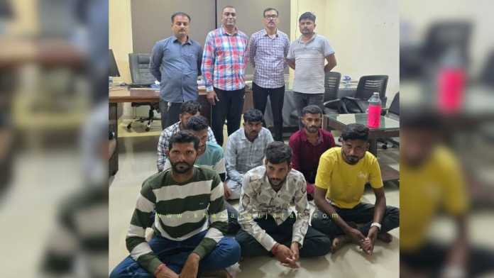 ખંભાળિયા પંથકમાં ડીવાયએસપી વી.પી. માનસેતાના વડપણ હેઠળ તેમની કચેરીના સ્ટાફ દ્વારા જુગાર સામે કરવામાં આવેલી કાર્યવાહી અંતર્ગત એ.એસ.આઈ. શક્તિરાજસિંહ જાડેજા, હેડ કોન્સ્ટેબલ સુખદેવસિંહ જાડેજા અને ભાવિનભાઈ સચદેવને મળેલી ચોક્કસ બાતમીના આધારે ખંભાળિયા તાલુકાના દખાણાદા બારા ગામે રહેતા નિર્મળસિંહ કનુભા જાડેજા નામના શખ્સ દ્વારા પોતાના રહેણાંક મકાનમાં ચલાવાતા જુગારના અખાડા પર દરોડાની કાર્યવાહી કરવામાં આવી હતી. જેમાં પોલીસે નિર્મળસિંહ કનુભા જાડેજા, કનકસિંહ જેમલજી જાડેજા, દશરથસિંહ ઉમેદસિંહ જાડેજા, ખેંગારજી ભીખુભા જાડેજા, રવિરાજસિંહ દોલુભા જાડેજા, વિજયસિંહ કેશરજી જાડેજા અને મહાવીરસિંહ લધુભા જાડેજા નામના સાત શખ્સોને ઝડપી લીધા હતા. આ દરોડા દરમિયાન પોલીસે રૂપિયા 71,200 ની રોકડ રકમ સહિતનો મુદ્દામાલ કબજે કરી, સલાયા મરીન પોલીસ મથકમાં જુગાર ધારાની કલમ હેઠળ ગુનો નોંધવામાં આવ્યો છે.