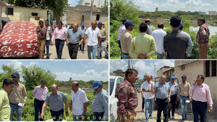 દરમિયાન આજે જામનગરમહાનગરપાલિકાના કમિશનર ડી. એન. મોદી ઉપરાંત કંટ્રોલિંગ અધિકારી મુકેશ વરણવા અને એસ્ટેટ શાખાની ટીમ તેમજ સોલિડ વેસ્ટ શાખાની ટીમ વગેરે દ્વારા સ્થળ પર જઈને નિરીક્ષણ કરવામાં આવ્યું હતું, રંગમતી નાગમતી નદીના દબાણવાળા વિસ્તારને વહેલી તકે ખુલ્લો કરી દેવા માટે ની તાકીદ કરી હતી.