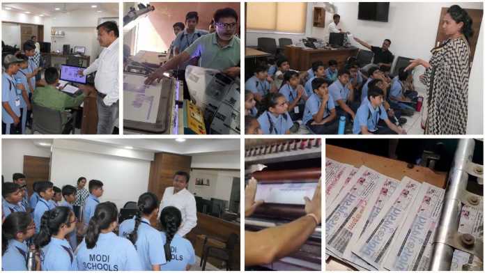 જામનગરની મોદી સ્કૂલના વિદ્યાર્થીઓએ શહેરની જાણીતા પેપર ‘ખબર ગુજરાત’ની મુલાકાતે આવ્યા હતાં. મીડિયા શું કામ કરે છે ? કેવી રીતે કામ કરે છે? પેપર કઇ રીતે બને છે ? ન્યુઝ કઇ રીતે કલેકટ થાય છે ? પ્રિન્ટ કઈ રીતે થાય છે ? વગેરે પ્રશ્ર્નોના ઉત્તર જાણવા માટે મોદીસ્કુલના સાતમા ધોરણના વિદ્યાર્થીઓ એ ‘ખબર ગુજરાત’ ન્યૂઝની મુલાકાત લીધી હતી. આ તકે આશરે 80 જેટલા વિદ્યાર્થીઓએ બે ટીમમાં ખબર ગુજરાતની ઓફિસે તેમજ પ્રેસરૂમની વીઝીટ કરી હતી.