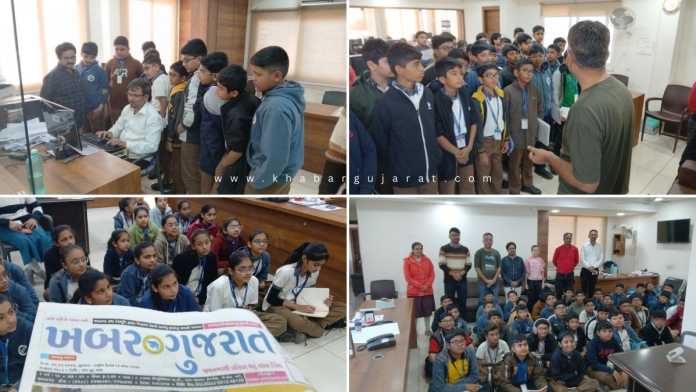 જામનગરની મોદી સ્કૂલ દ્વારા વિદ્યાર્થીઓને પુસ્તકીય જ્ઞાનની સાથે સાથે પ્રકટીકલ જ્ઞાન પણ મળે તે માટે શૈક્ષણિક પ્રવાસ પણ યોજવામાં આવે છે તેમજ વિવિધ એકમોની મુલાકાત પણ લેવાઇ છે. જે અંતર્ગત મોદી સ્કૂલના વિદ્યાર્થીઓ દ્વારા ખબર ગુજરાત સ્ટુડીયોની મુલાકાત લીધી હતી. આ મુલાકાત દરમિયાન વિદ્યાર્થીઓએ પ્રિન્ટ મિડીયા અને ડીઝીટલ મીડીયામાં સમાચાર કેવી રીતે બને છે, ન્યુઝ પેપર કેવી રીતે પબ્લીસ થાય છે તે અંગેની માહિતી મેળવી હતી. વિદ્યાર્થીઓએ ખબર ગુજરાતની મુલાકાત દરમિયાન ન્યુઝ રૂમ, એડીટીંગ પેનલ અને સ્ટુડીયો નિહાળ્યા હતાં. તેમજ ખબર ગુજરાતના પત્રકારોને ટેકનીકલ સ્ટાફ પાસેથી સમાચાર કઇ રીતે હેડલાઇન બને? કેવી રીતે રીપોટીંગ થાય છે? પ્રિન્ટ મીડીયામાં ન્યુઝ પેપર કેવી રીતે પબ્લીસ થાય છે સહિતની વિવિધ બાબતો અંગે માર્ગદર્શન મેળવ્યું હતું. મોદી સ્કૂલના ધોરણ 7ના ગુજરાતી માઘ્યમના 70થી વધુ વિદ્યાર્થીઓએ તેમના શિક્ષકો સાથે આ મુલાકાત લીધી હતી.