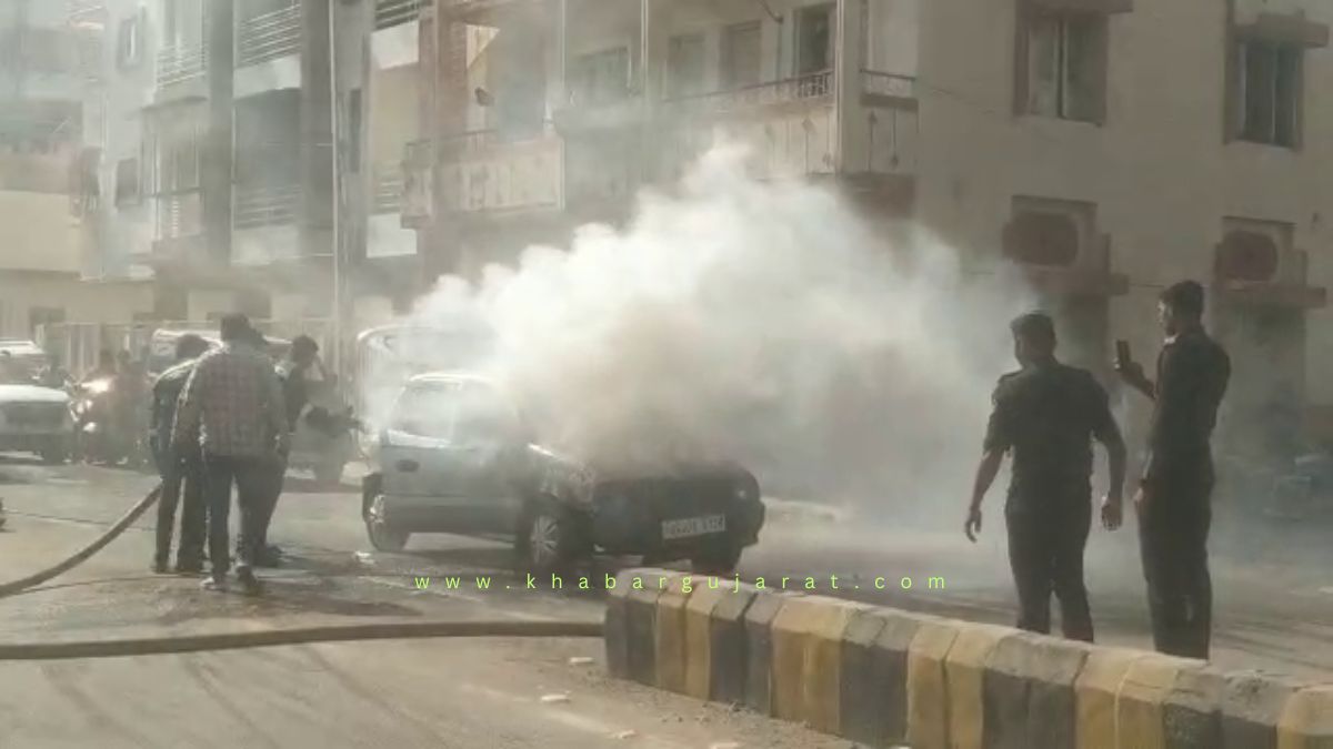 જામનગરના હિંમતનગર રોડ ઉપર આજે બપોરે જાહેર માર્ગ પર ચાલતી કારમાં અચાનક આગ લાગતા નાશભાગની પરિસ્થિતિ સર્જાઈ હતી. કારમાંથી ધુમાડો નીકળતા જ આસપાસના લોકો એકઠા થઈ ગયા અને આગ પર કાબૂ મેળવવા માટે તાત્કાલિક પ્રયત્નો હાથ ધર્યા હતા.