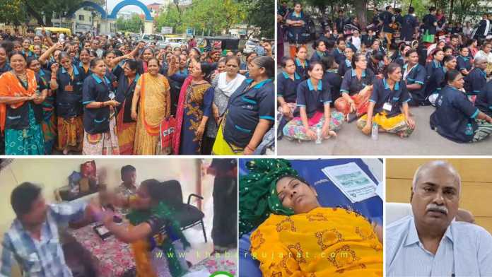 સૌરાષ્ટ્રની સોથી મોટી જીજી હોસ્પીટલમાં વહેલી સવારે મહિલા સફાઈ કામદારોએ સુપરવાઈઝ રાજભા સાથએ તકરાર થતા લાફાવારી કરીને માર માર્યો હતો. જે બાદ અન્ય 400 જેટલા કામદારો સીટી બી પોલીસ મથકે દોડી ગયા હતા.અને પોલીસમાં ફરીયાદ કરી. તેમજ હોસ્પીટલમાં કામ બંધ કરીને વિરોધ વ્યકત કર્યો હતો. થોડા દિવસ પહેલા પણ એક મહિલા સફાઈ કામદારે ઝેરી દવા પીને આપધાતનો પ્રયાસ કર્યો હતો. ફરી અન્ય મહિલા કામદાર દ્વારા સુપરવાઈઝ સાથે તકરાર કરીને માર માર્યો. સમગ્ર બનાવના સીસીટીવી પણ સામે આવ્યા હતા. હોસ્પીટલ તંત્રને બનાવની જાણ થતા કોન્ટ્રાન્ટ એજન્સીને જાણ કરીને સફાઈ કામદારને કામ ચાલુ રાખવા સુચના આપી હતી. અને બંન્ને જુથના કામદારોને વચ્ચે ઉકેલ લાવી ફરી આવી ના બને તે માટે સુચના આપી હતી. ત્રણ એક સપ્તાહથી સફાઈ કામદારોની આંતરીક તકરારને હોસ્પીટલમાં વિવાદનુ કારણ બન્યુ છે. મહિલા કામદારોને હાજરી, બદલી અને કાયમી સહીતના પ્રશ્નો તકરાર વારંવાર થતી હોય છે. અગાઉ પેન્શનના નાણા ના મળતા મહિલાઓ કામદારો દ્વારા વિરોધ કર્યો હતો. ફરી સુપરવાઈઝરને માર તેની ઓફીસમાં જઈને માર મારતા વિવાદ સર્જાયો છે. કોન્ટ્રાકટ એજન્સીના કામદારોના આંતરીક વિવાદમાં હોસ્પીટલમાં દર્દીઓની સેવાને અસર થાય છે.