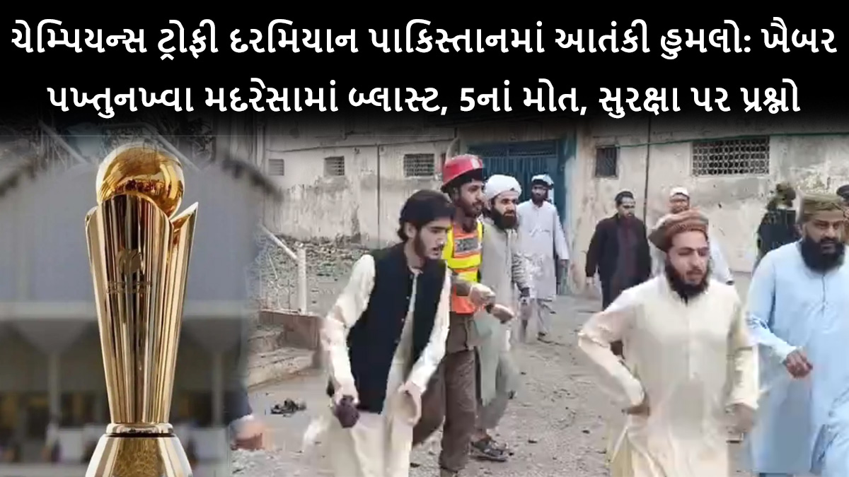 પાકિસ્તાનમાં ચાલી રહેલી ચેમ્પિયન્સ ટ્રોફી 2025 દરમિયાન, દેશના ખૈબર પખ્તુનખ્વા પ્રાંતના નૌશેરા જિલ્લાના અકોરા ખટ્ટક વિસ્તારમાં આવેલ જામિયા હક્કાનીયા મદરેસામાં શુક્રવારે એક ભયાનક બોમ્બ વિસ્ફોટ થયો હતો. આ દુર્ઘટનામાં ઓછામાં ઓછી 5 લોકોના મોત થયા છે અને 20થી વધુ લોકો ઘાયલ થયા છે. સ્થાનિક પોલીસ અધિકારી અબ્દુલ રશીદે જણાવ્યું કે ઘાયલોને નજીકની હોસ્પિટલમાં દાખલ કરવામાં આવ્યા છે અને ઘટનાની તપાસ ચાલુ છે. આ હુમલાની જવાબદારી હજી સુધી કોઈ સંગઠને સ્વીકારી નથી.