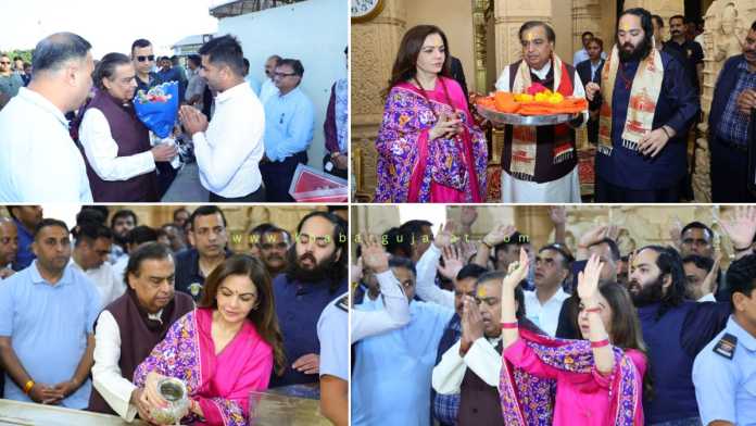 નવા વર્ષ 2026ના પાવન અવસરે દેશના જાણીતા ઉદ્યોગપતિ અને રિલાયન્સ ઇન્ડસ્ટ્રીઝના ચેરમેન મુકેશ અંબાણી તેમના પરિવાર સાથે પ્રથમ જ્યોતિર્લિંગ શ્રી સોમનાથ મહાદેવના દર્શને પહોંચ્યા હતા. નીતા અંબાણી અને અનંત અંબાણી પણ તેમની સાથે હાજર રહ્યા હતા. સોમનાથ મહાદેવના ચરણોમાં શ્રદ્ધાભાવ સાથે માથું નમાવીને અંબાણી પરિવારે દેશની સુખ, શાંતિ અને સમૃદ્ધિ માટે પ્રાર્થના કરી હતી.