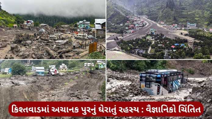 જમ્મુ અને કાશ્મીરના કિશ્તવાડ જિલ્લાના ચાશોટી ગામમાં અચાનક પુરના કારણે ભારે વિનાશ સર્જાયો હતો. 14 ઓગસ્ટના આ ઘટનામાં ઘણાં લોકોએ જીવ ગુમાવ્યા હતાં. સેંકડો લોકો ગુમ થયા પરંતુ, આ પુર કેવી રીતે આવ્યું ? શું કારણો હતાં તે અંગે રહસ્ય ઘેરા બનતા જાય છે. વૈજ્ઞાનિકો ચિંતિત છે.