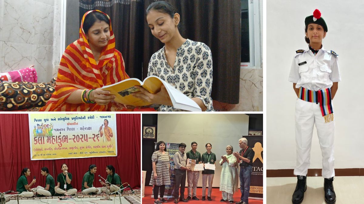 એન.સી.સી.: કેડેટ તરીકે સેવાઓ આપી રહી છે.