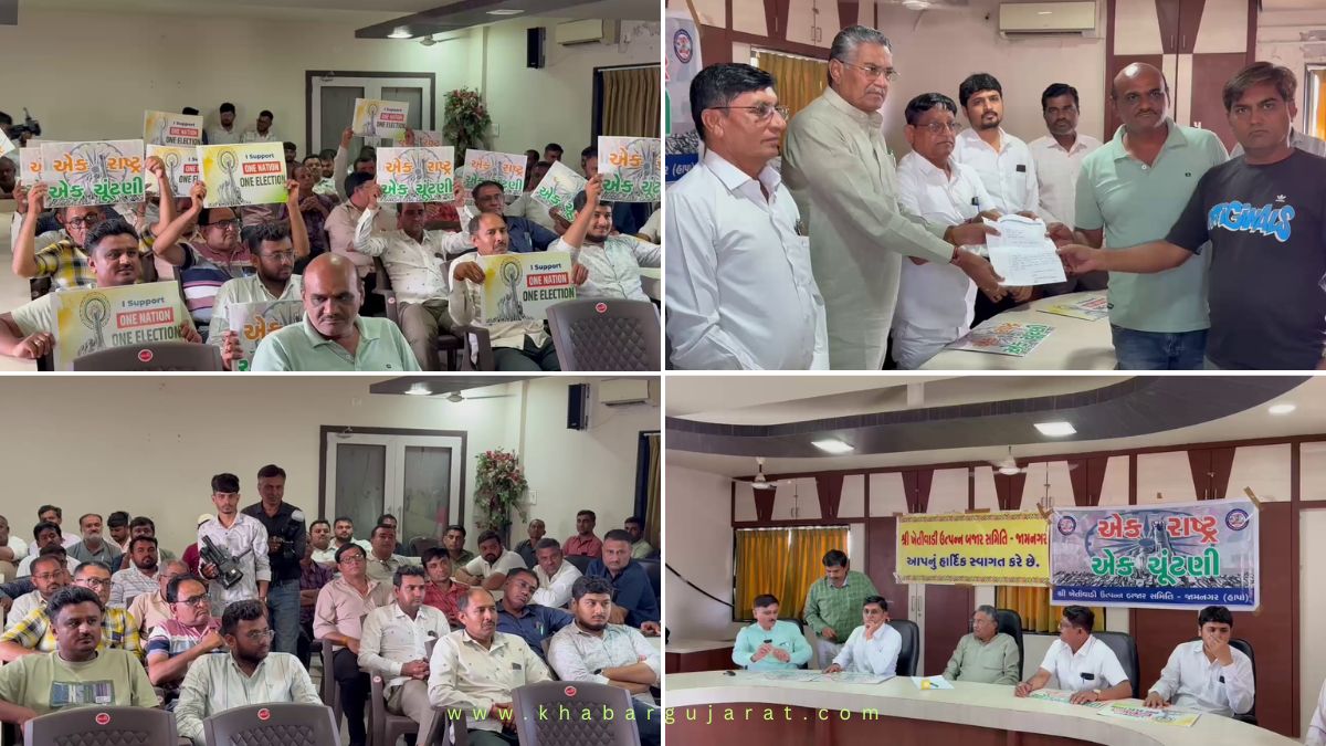 જામનગર હાપા માર્કેટીગ યાર્ડ ખાતે કૃષિમંત્રી રાઘવજી પટેલની અધ્યક્ષતામાં “એક રાષ્ટ્ર,એક ચૂંટણી”ના પ્રસ્તાવને લઈને તથા લોકોમાં જાગૃતતા આવે તે હેતુથી બેઠક યોજવામાં આવી હતી. આ બેઠકમાં હાપા માર્કેટિંગ યાર્ડના વેપારીઓ, હોદ્દેદારો દ્વારા પ્રસ્તાવને સમર્થન જાહેર કરવામાં આવ્યું હતું.
