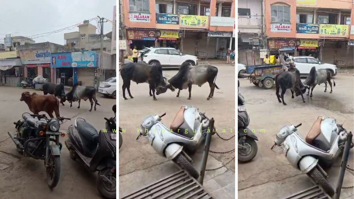 ખંભાળિયાના જોધપુર ગેઈટ વિસ્તારમાં આખલાઓના હુમલાથી રાહદારીઓ અને વેપારીઓમાં ઉગ્ર રોષ