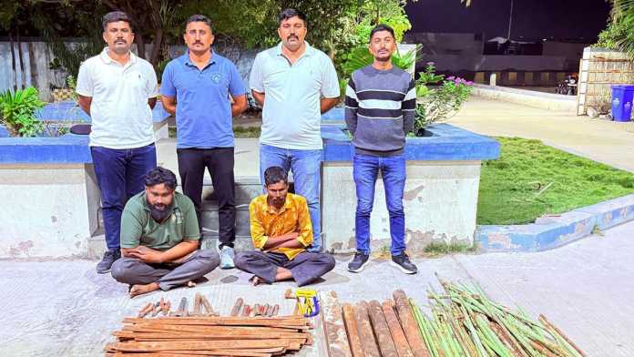 આ પ્રકરણને અનુલક્ષીને દ્વારકા સર્કલના ડીવાયએસપી સાગર રાઠોડની સૂચના મુજબ મીઠાપુરના પી.આઈ. ડી.એન. વાંઝાના સીધા માર્ગદર્શન હેઠળ મીઠાપુર પોલીસની કાર્યવાહીમાં સર્વેલન્સ સ્ટાફ દ્વારા હ્યુમન સોર્સિસની મદદથી હેડ કોન્સ્ટેબલ મહિરાજદાન ગઢવી, જયપાલસિંહ આર. જાડેજા અને રાજદીપસિંહ ઝાલાને મળેલી ચોક્કસ બાતમીના આધારે શામળાસર ગામના ધીરાભા મિયાભા માણેક (ઉ.વ. 34) અને આરંભડા ગામના મુકેશ ભના દેવીપુજક (ઉ.વ. 35) નામના બે શખ્સોને ઝડપી લઇ, ચોરીના સામાન અને મોબાઈલ સહિત કુલ રૂપિયા 1,48,480નો મુદ્દામાલ કબજે કર્યો હતો.
