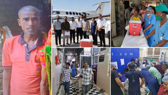 જેથી જામનગરની જી.જી. હોસ્પિટલના તબીબો તેમજ અમદાવાદથી દોડી આવેલી સ્પેશિયલ તબીબોની ટીમ વગેરે દ્વારા શ્રમિક યુવાનનું ઓપરેશન કરીને તેના જીવિત અવસ્થામાં રહેલા અવયવોને એકત્ર કરી લેવામાં આવ્યા છે, અને સ્પેશિયલ કોરિડોર બનાવી ચાર્ટર ફ્લાઈટ થી અમદાવાદ લઈ જવાની કાર્યવાહી હાથ ધરી લેવામાં આવી છે .