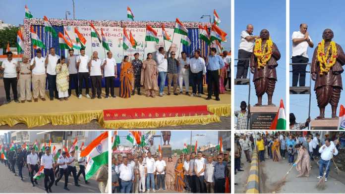 સમગ્ર દેશમાં 79મા સ્વાતંત્ર્ય દિવસની ભવ્ય ઉજવણીના ભાગરૂપે “હર ઘર તિરંગા” અભિયાન ચાલી રહ્યું છે. આ અભિયાન અંતર્ગત, જામનગર જિલ્લા વહીવટી તંત્ર અને મહાનગરપાલિકા દ્વારા સંયુક્તપણે એક વિશાળ તિરંગા યાત્રાનું આયોજન કરવામાં આવ્યું હતું જેમાં પાંચ હજારથી વધુ જામનગરવાસીઓ ઉમંગભેર જોડાયા હતા.