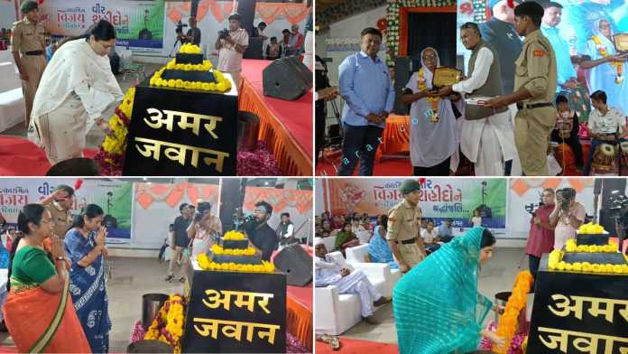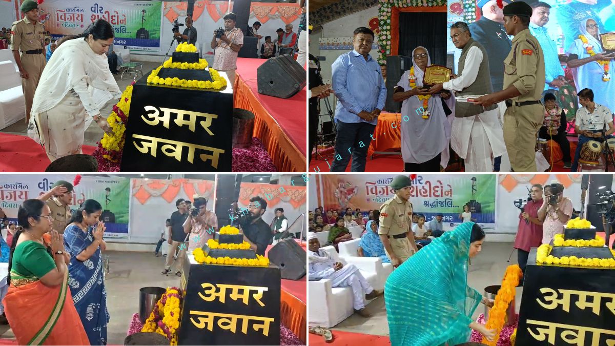 26મી જુલાઇ કારગીલ વિજય દિવસ નિમિતે હાલાર જિલ્લા માજી સૈનિક મંડળ દ્વારા વીર શહિદોને શ્રઘ્ધાંજલી અર્પણ કરવા તથા કારગીલ યુઘ્ધમાં શહિદ થયેલા જવાનોને શહાદતને નમન કરવા દેશભકતી ગીતોના કાર્યક્રમનું આયોજન કરાયું હતું. આ કાર્યક્રમ વિશ્ર્વકર્મા બાદ ગુર્જર સુથાર જ્ઞાતિની વાડી, ગાંધીનગર મેઇન રોડ, જામનગર ખાતે શનિવારે કાર્યક્રમ યોજાયો હતો. આ કાર્યક્રમમાં કલાકારોમાં પ્રશાંત મકવાણા, સપના બાલા, તરૂણ વાઘેલા, સુલેમાન બુર્બાન, રાજુ દવે તથા અશોક રાણા ઉપસ્થિત રહી દેશભકિતના ગીતો રજૂ કર્યા હતાં.