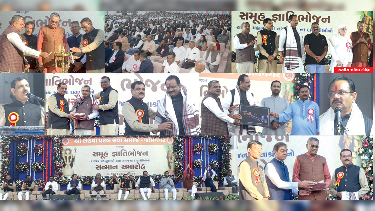 સમસ્ત લેઉવા પટેલ સમાજ જામનગર દ્વારા રણજીતનગર સ્થિત પટેલ સમાજ ખાતે જ્ઞાતિ એકતા, સંસ્કૃતિ અને ગૌરવના પ્રતીક સમાન એક ઐતિહાસિક કાર્યક્રમનું આયોજન કરવામાં આવ્યું હતું. મહારાસ, સામાજિક સન્માન અને સમૂહ ભોજનના આ ‘ત્રિવેણી સંગમ’માં અંદાજે 52,000 જેટલા જ્ઞાતિજનોએ ઉમટી લેઉવા પટેલ સમાજ અતૂટ સંગઠન શક્તિનો પરિચય કરાવ્યો હતો.